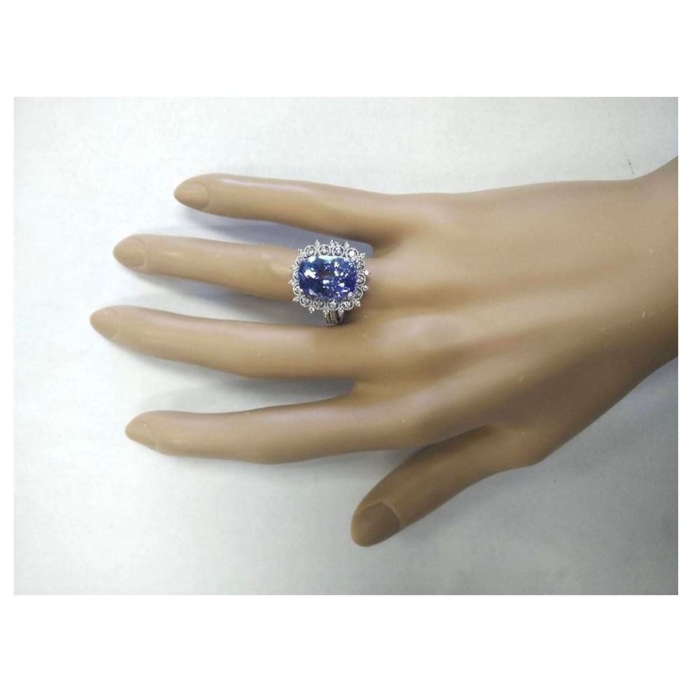 10.30 CTW Natural Blue Tanzanite And Diamond Ring 14k Solid White Gold
