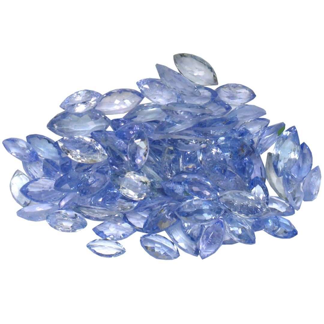 Sixty marquise mixed cut natural tanzanites, measuring 4.00 x 3.00 x 2.00mm, exact total weight 10.32ct., clarity is slightly included, type I, medium dark, very slightly grayish, violetish blue color, (GIA vB 6/3), cut is good. Measurements & the color grade are an average for the group, Color grade is an average for the group, Transmitting light with no distortion, transparent, Naturally occurring internal & external characteristics are present, Indications of multiple laboratory enhancements, including high temperature heat treatment. Westfield Appraised at $995.00.