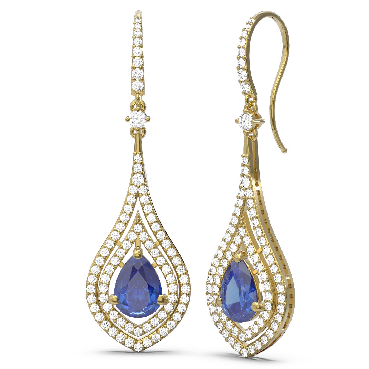 REF-540F2M - SKU: 59299 ---- 10.35 ctw Tanzanite & Diamond Earrings 18K Yellow Gold