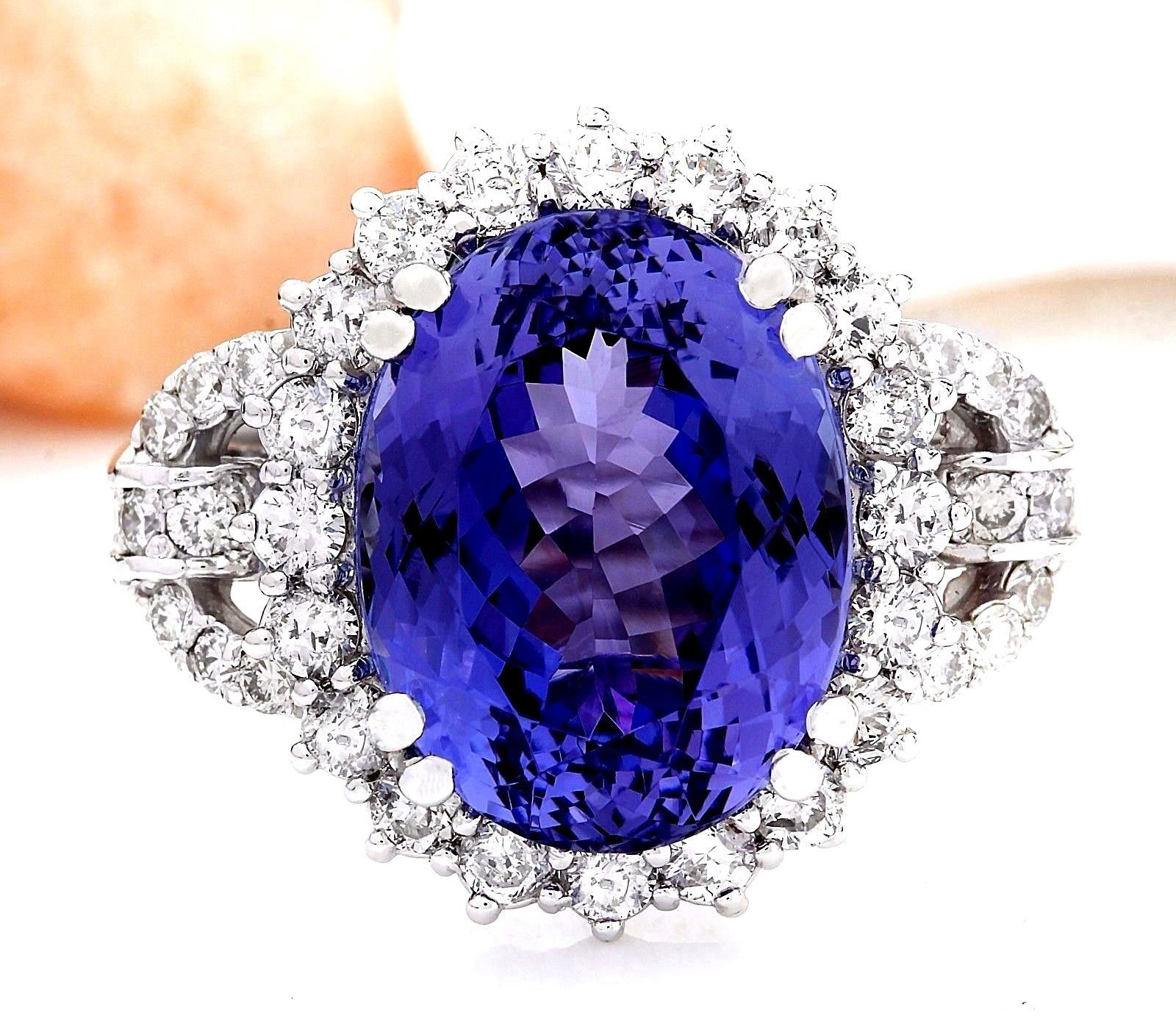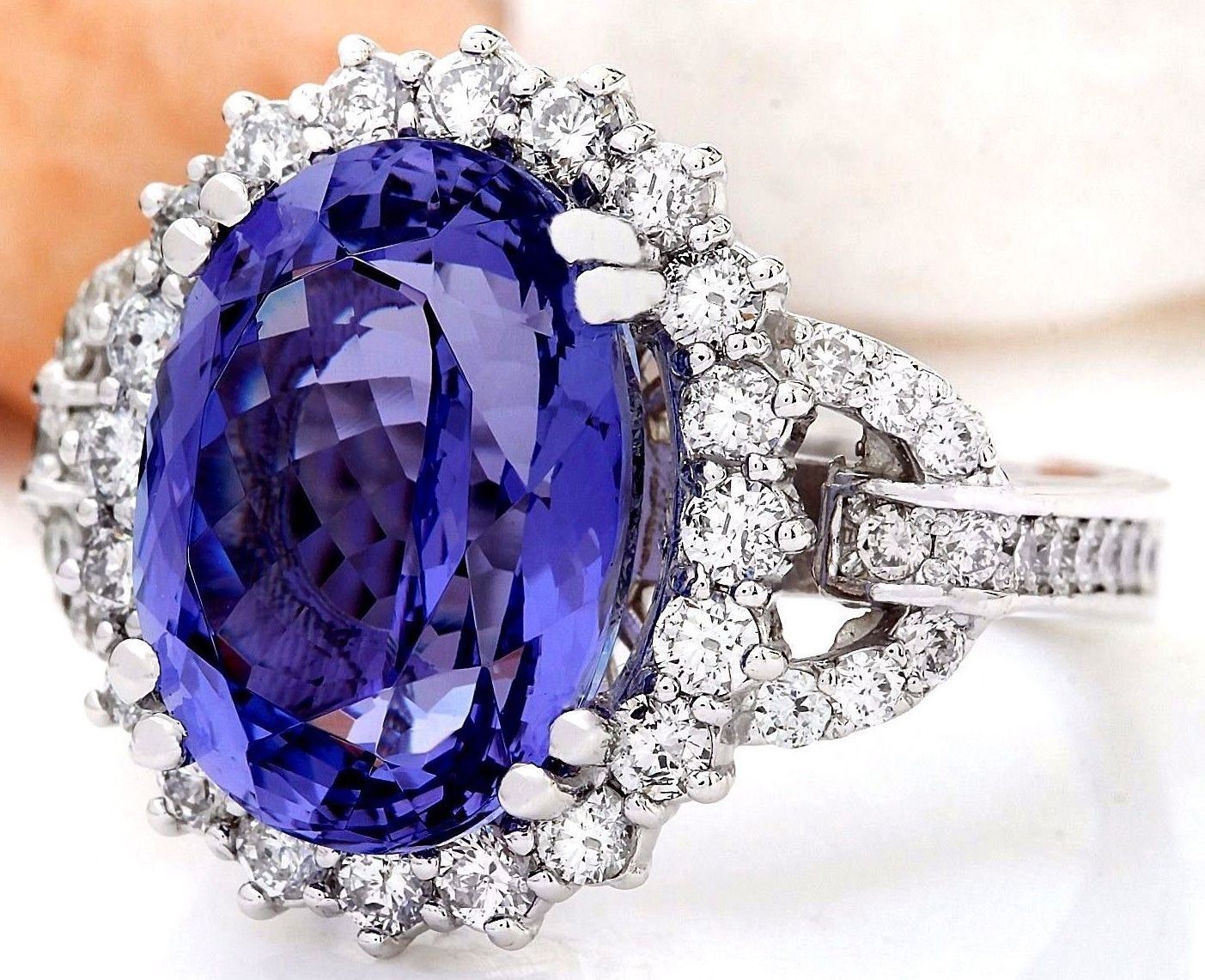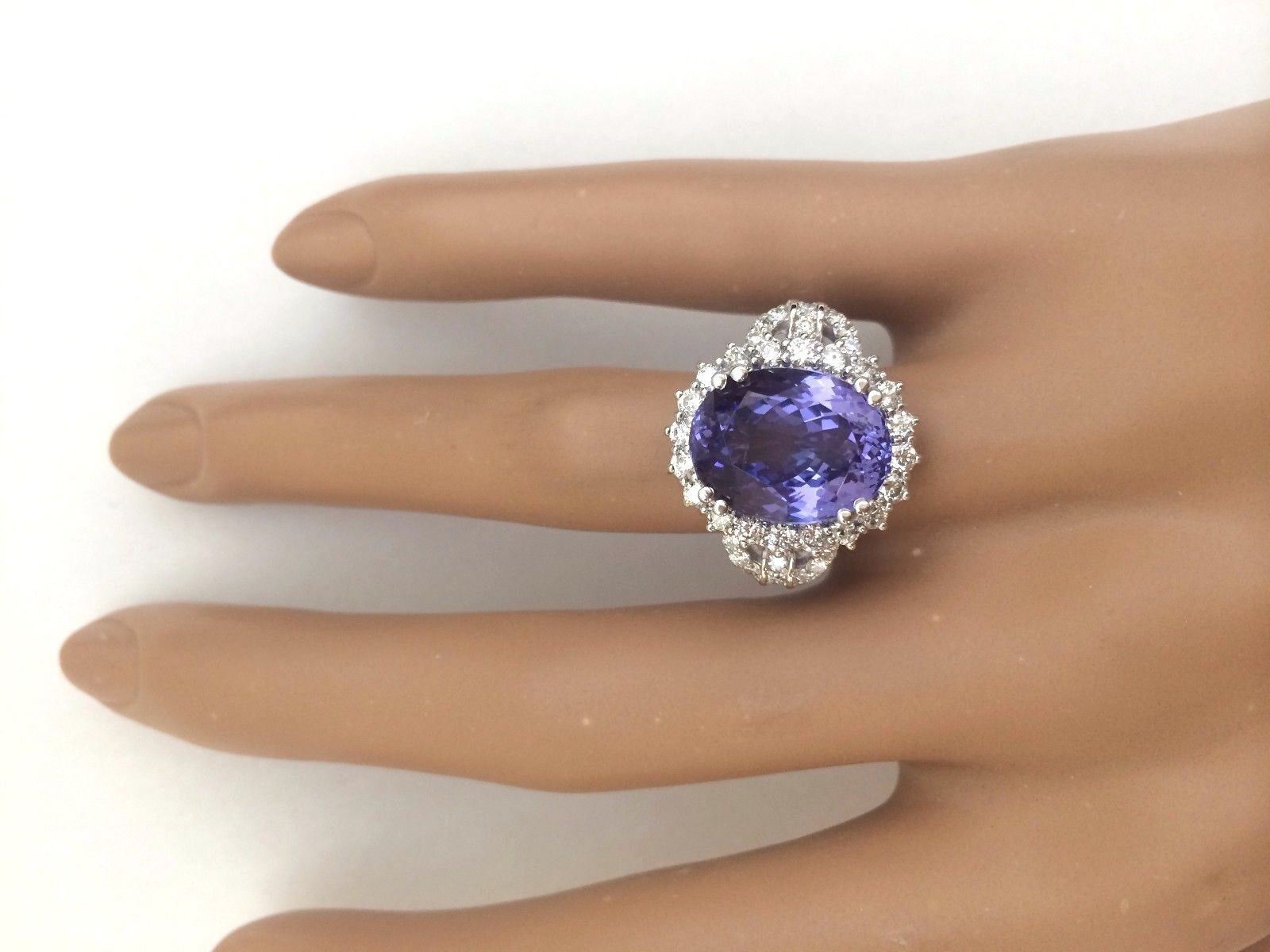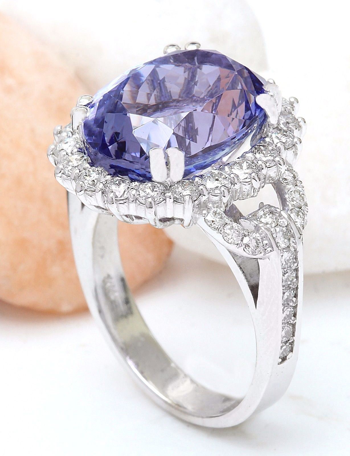 10.36 Carat Natural Tanzanite 14K Solid White Gold Diamond Ring