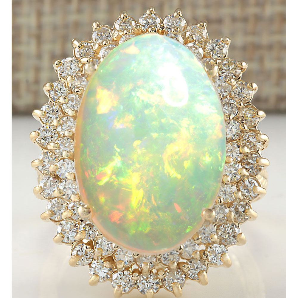 10.38 CTW Natural Opal And Diamond Ring 14K Solid Yellow Gold