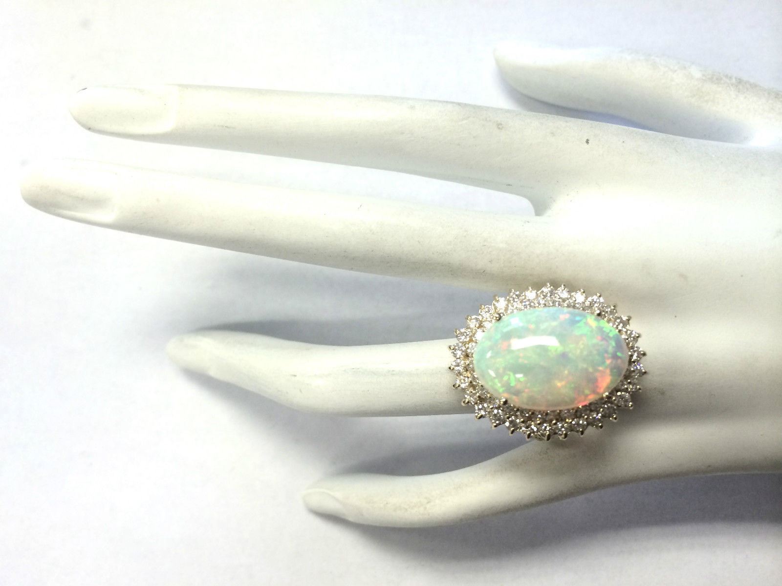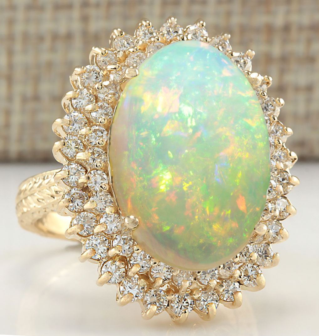 10.38 CTW Natural Opal And Diamond Ring 18K Solid Yellow Gold