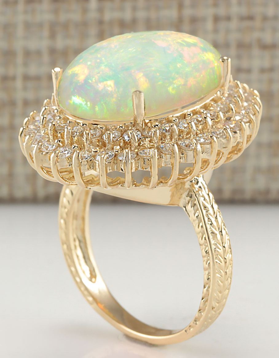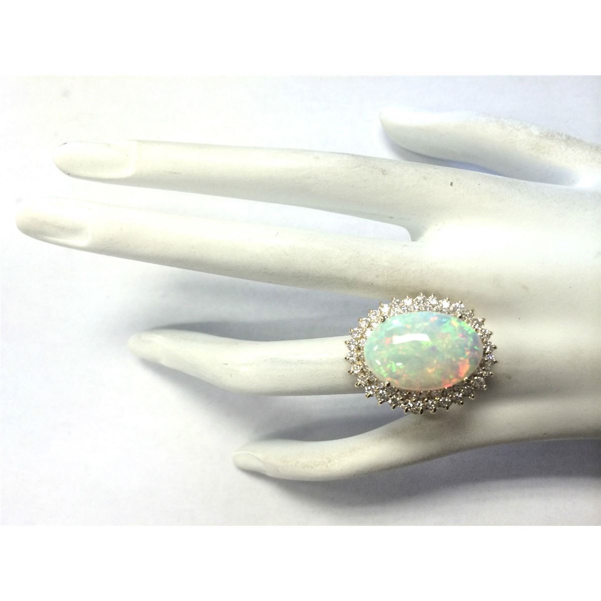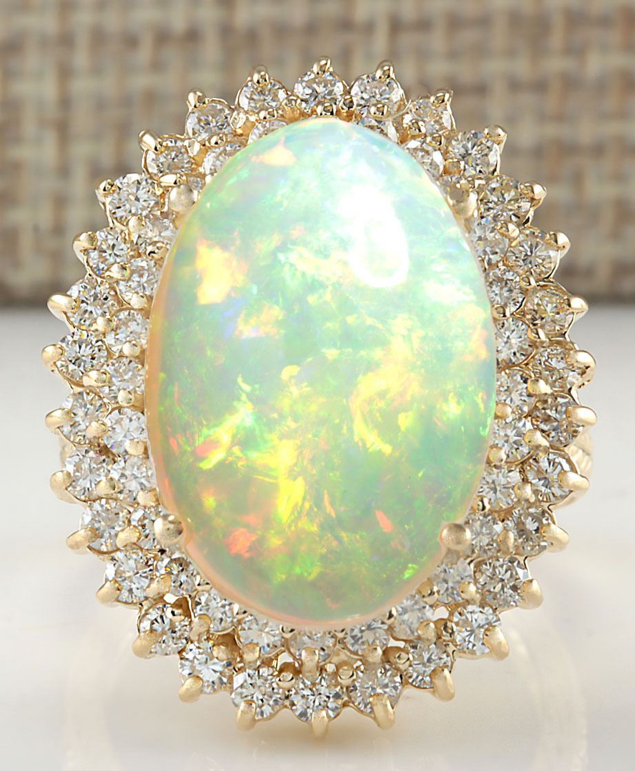 Stamped: 14K Ring Size: 7 Total Ring Weight: 10.5 Grams Diamond Weight: Total natural diamond weight is 1.60carat. SI1-SI2 clarity / G-H color Gemstone Weight: Total Natural Opal Weight is 8.78ctw (Measures: 19.47x13.30mm) Face Measures: 26.57x21.25mm Main stone color: Multicolor [SKU:702382]