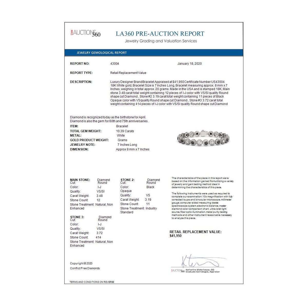 All sales are final, placing a bid is a legally binding obligation. All lots are sold as is, where is, with all the faults, imperfections, omissions and errors in the written description, estimates, appraisals, graphics and photography. USJL is not responsible for any errors or omissions in the description, graphics or photography provided or in the bidding software. Due diligence to verify the condition and description of a lot is the sole responsibility of the Bidder prior to placing any bid. Returns may only be made with the advance written authorization of USJL and are in USJL's sole discretion to approve. To request a return you must provide a written request fully explaining the basis for the return no later than 4 days after your receipt of the lot. Under no circumstances will any amounts other than the winning bid amount be refunded. A restocking charge of 19% of the full invoice amount may apply in USJL 's sole discretion. Any allowed returns must be received in exactly the same condition as when originally shipped to Buyer, or they will be returned to buyer at Buyer's cost. Any unauthorized returns will be refused. DELIVERY REFUSAL OF ITEMS SHIPPED BY US JEWELRY LIQUIDATION TO THE BIDDER CONSTITUTES AN UNAUTHORIZED RETURN IN DIRECT VIOLATION OF THESE GENERAL TERMS AND CONDITIONS.
