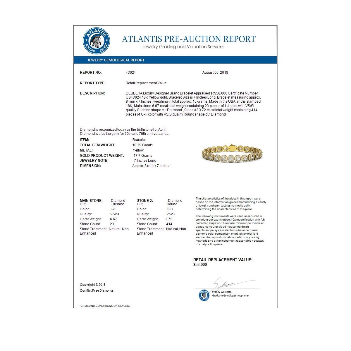 10.39 ctw Cushion Diamond Bracelet 18K Yellow Gold
