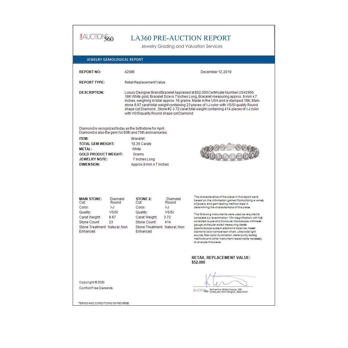 REF-787R8K - SKU: 42995 ---- 10.39 ctw Diamond Micro Pave Bracelet 18K White Gold
