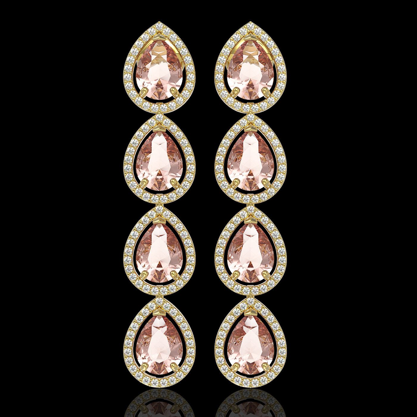 REF-259F3M - SKU: 41296 ---- 10.4 ctw Morganite & Diamond Micro Pave Halo Earrings 10k Yellow Gold
