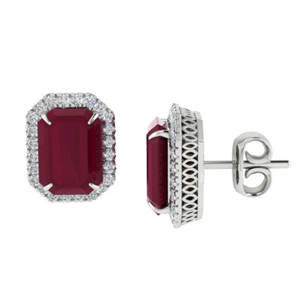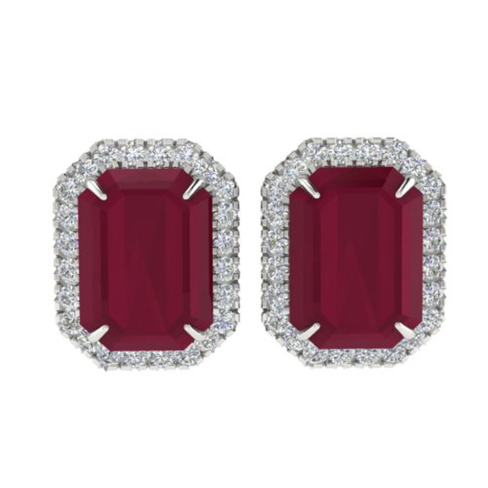 SKU: 21231 ---- 10.40 ctw Ruby & Micro Pave VS/SI Diamond Earrings 18k White Gold