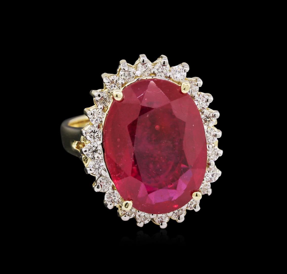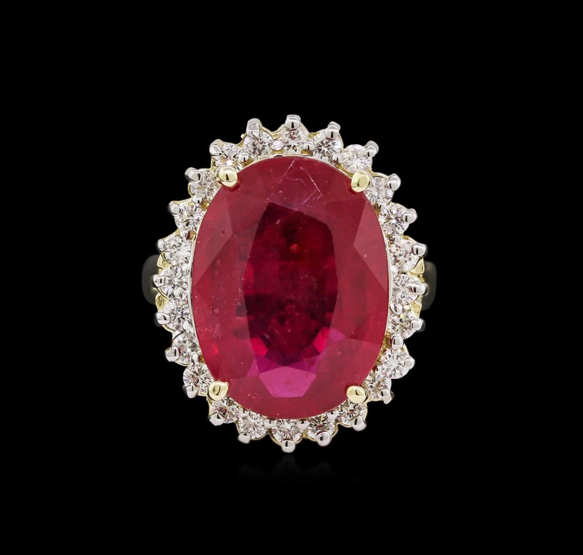 One ring featuring: 14KT yellow gold weighing 6.70 grams containing 1 ruby with a total weight of 10.40ct and diamonds with a total weight of 0.65ct.