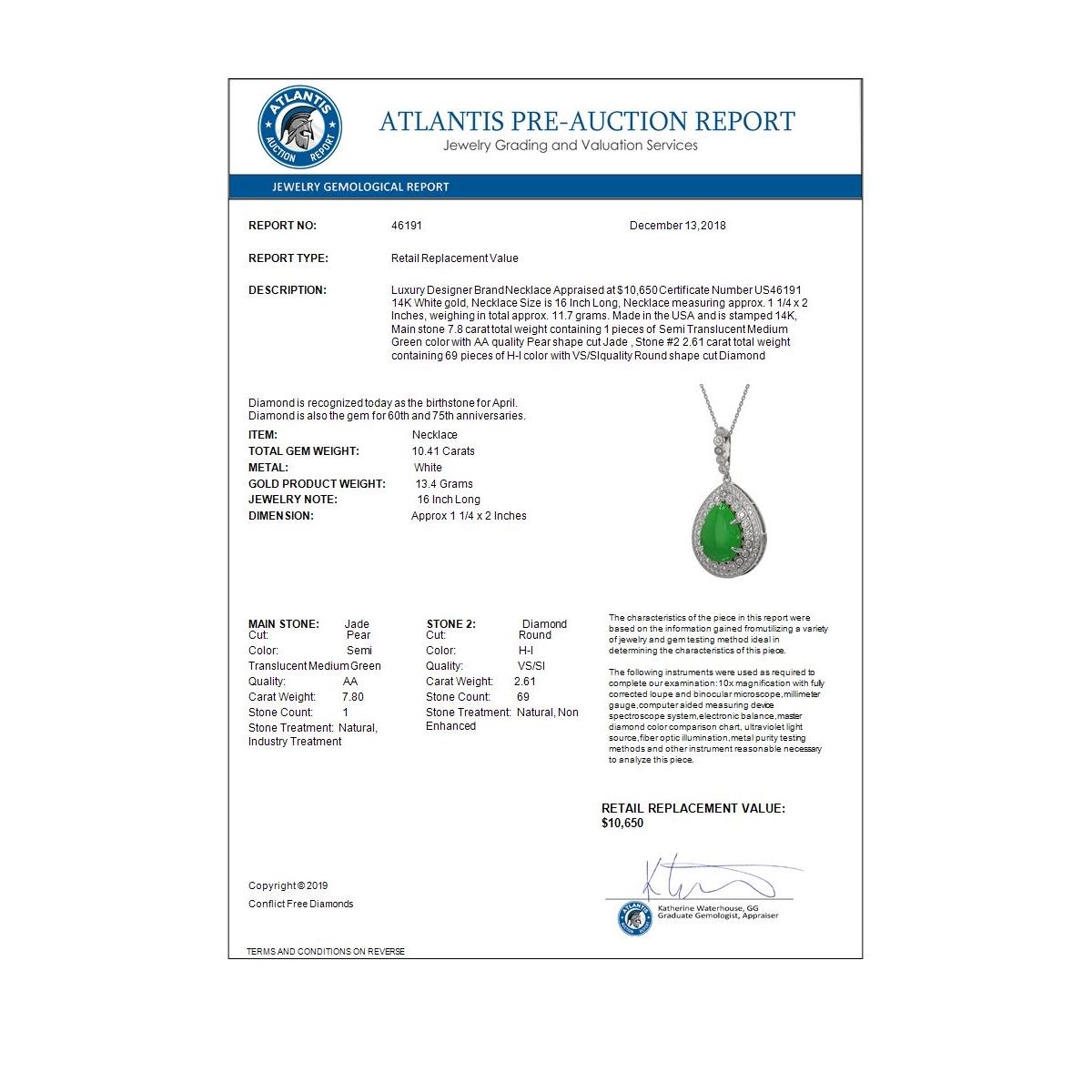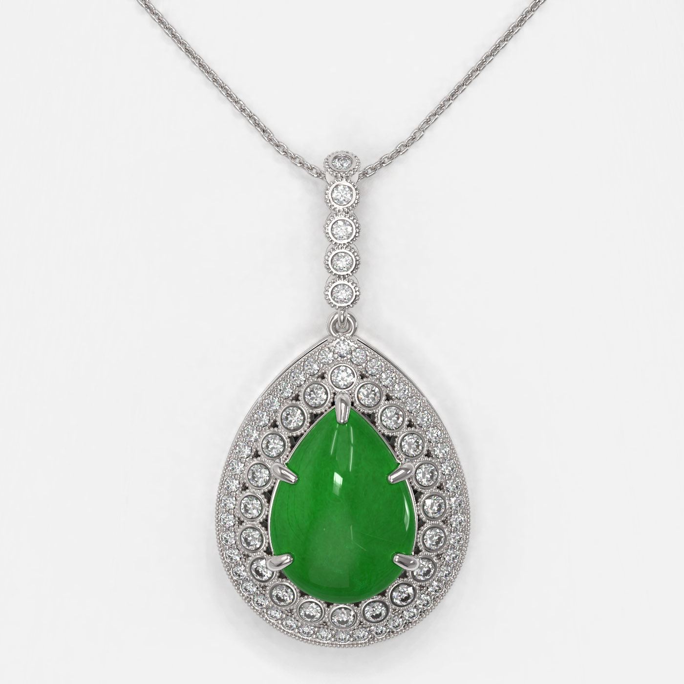 10.41 ctw Jade & Diamond Necklace 14K White Gold