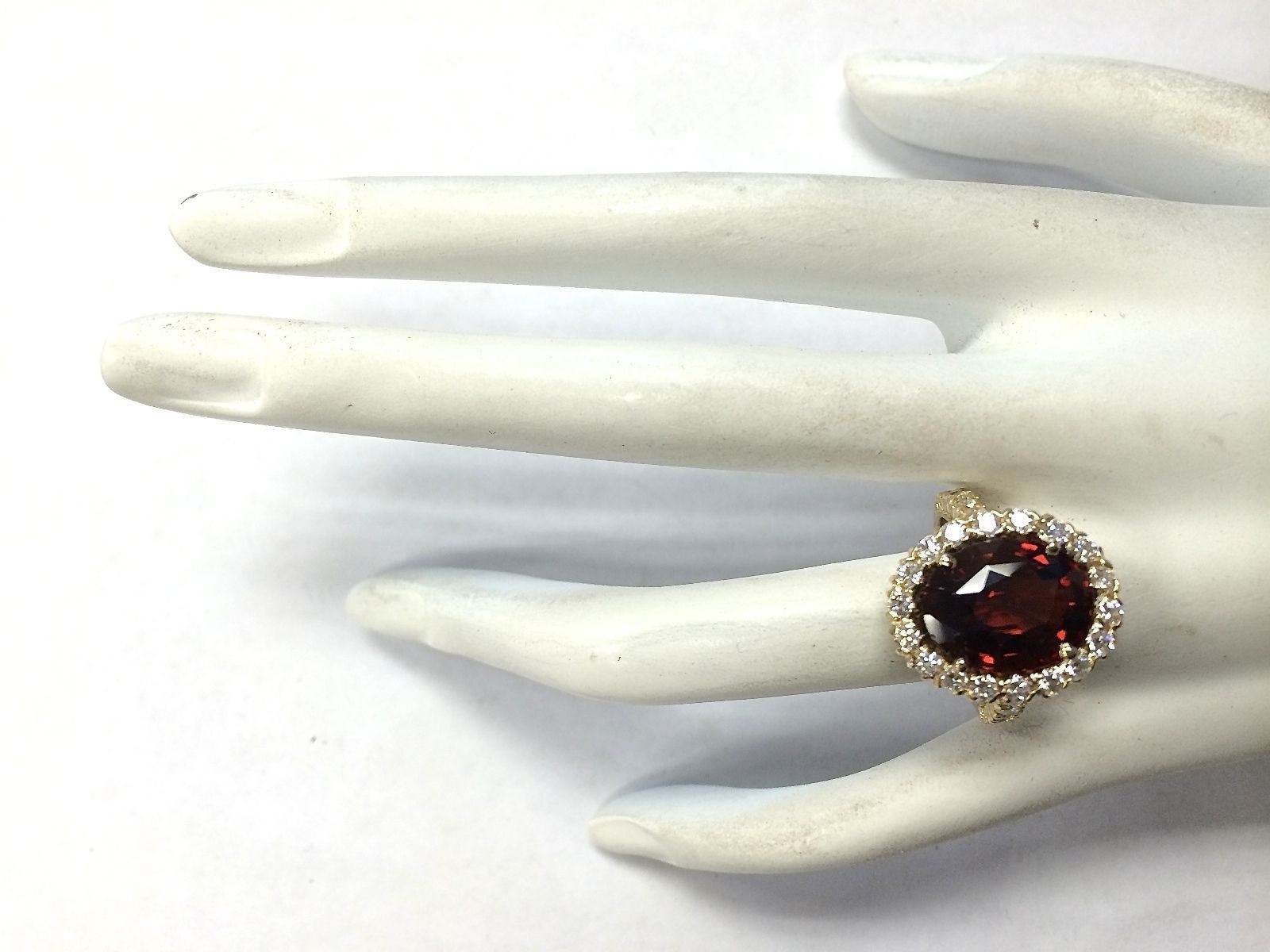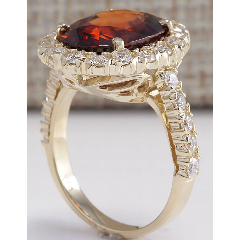 10.43 CTW Natural Hessonite Garnet And Diamond Ring 18K Solid Yellow Gold