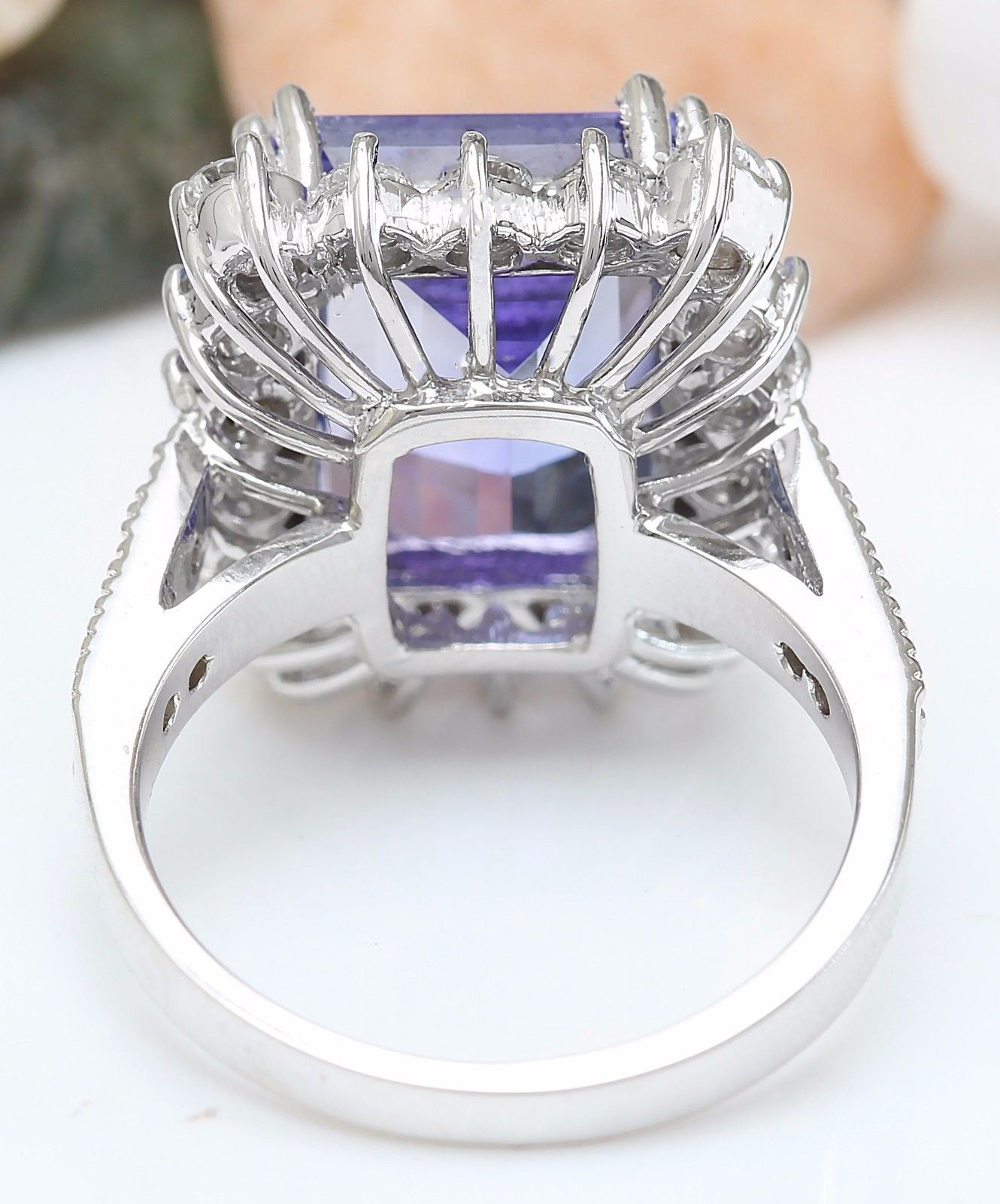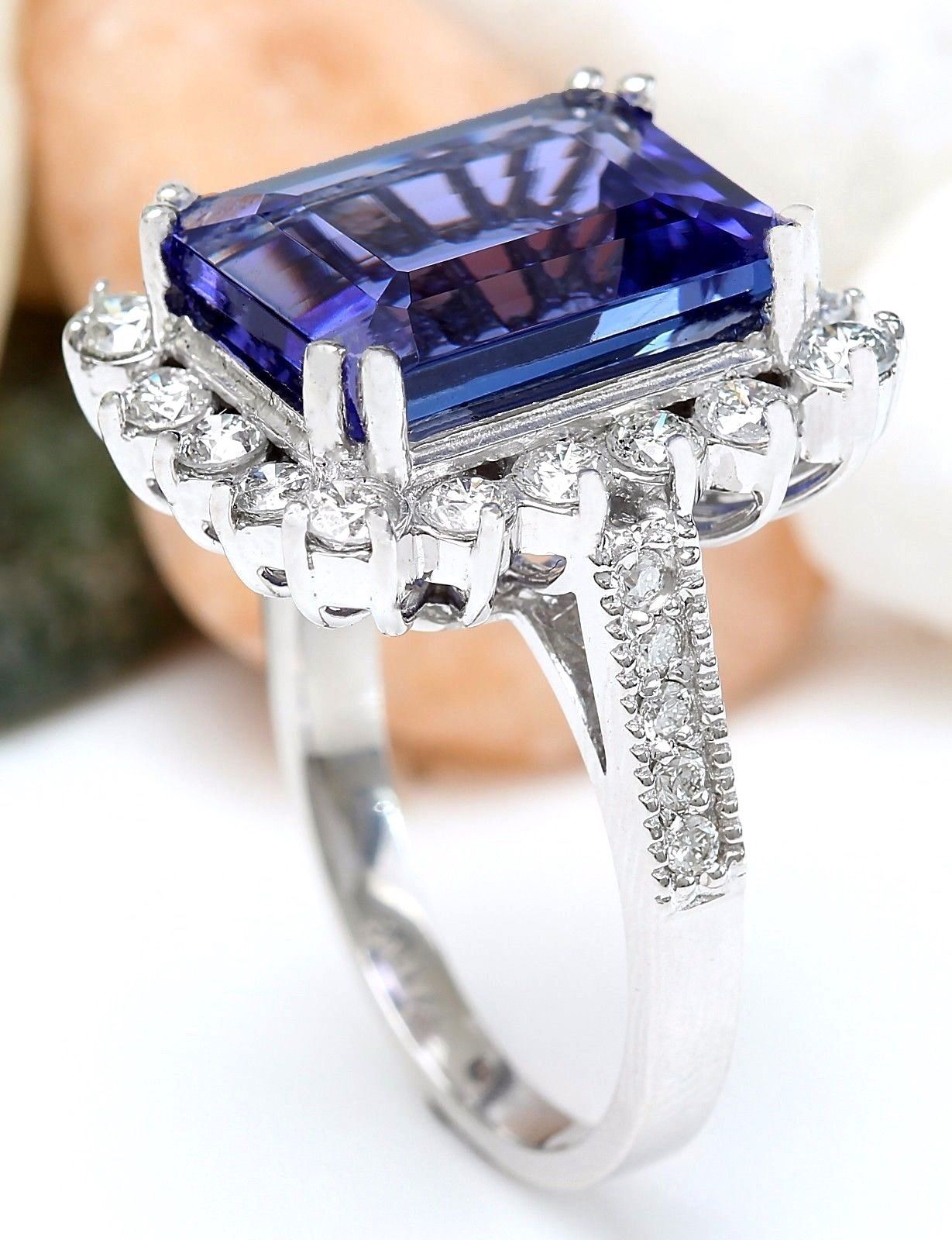 10.44 Carat Natural Tanzanite 18K Solid White Gold Diamond Ring