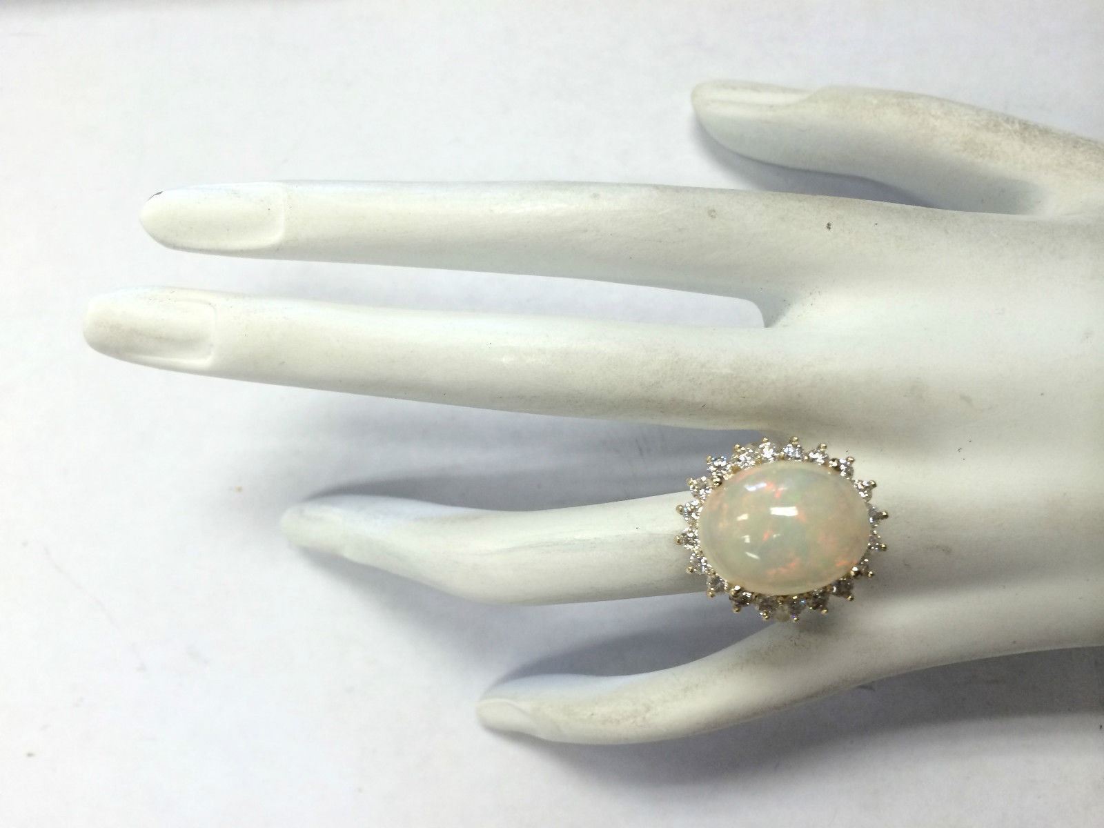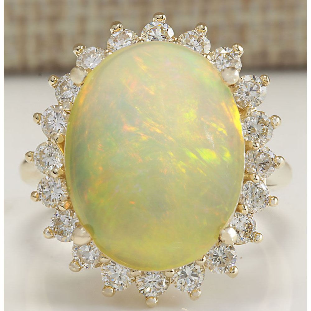 10.46 CTW Natural Opal And Diamond Ring In 18K Solid Yellow Gold