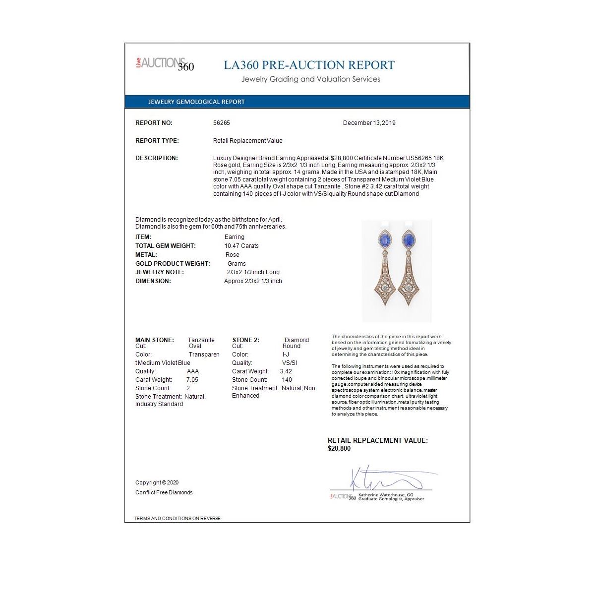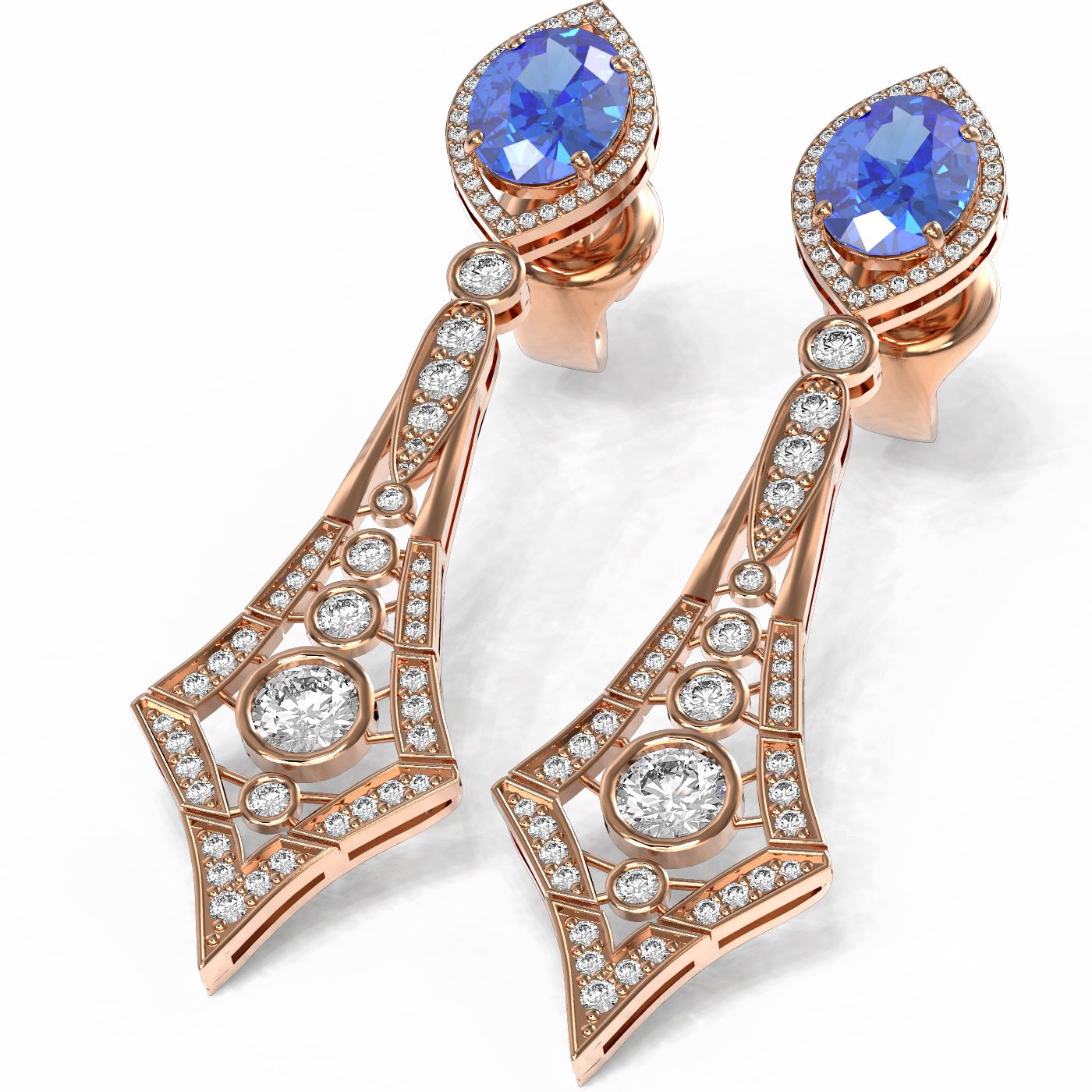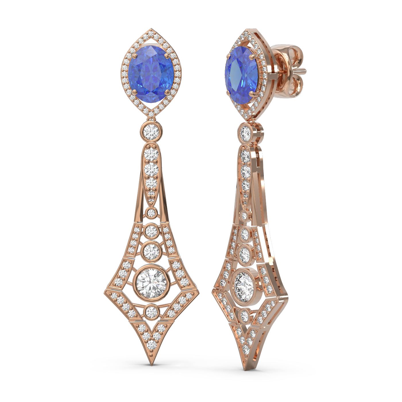 REF-654W5H - SKU: 56265 ---- 10.47 ctw Tanzanite & Diamond Earrings 18K Rose Gold