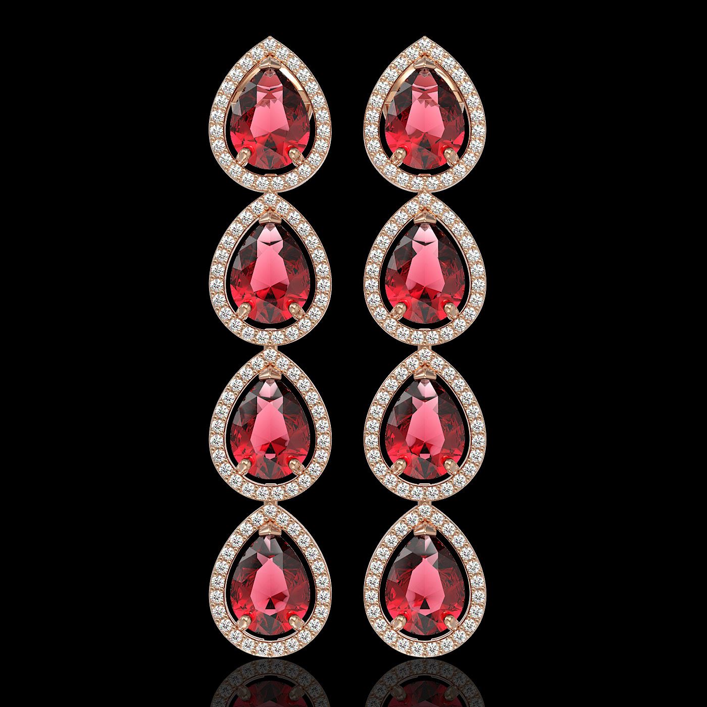 REF-211N8Y -41301 ---- 10.48 CTW Tourmaline & Diamond Halo Earrings 10K Rose Gold ---- Luxury Designer Brand Earring Appraised at $11,650 Certificate Number US41301  10k Rose gold,  Earring Size is 2 Inches Long, Earring measuring approx. 10 mm x 2 Inches, weighing in total approx. 8 grams. Made in the USA and is stamped 10k, Main stone 8.88 carat total weight containing 8 pieces of Translucent Reddish Pink color with AAA quality Pear shape cut Tourmaline , Stone #2 1.6 carat total weight containing 200 pieces of G-H color with  VS/SI quality Round shape cut Diamond