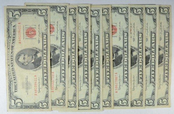 A NICER LOT OF CIRCULATED RED SEAL NOTES, EST. $90.00 TO $100.00