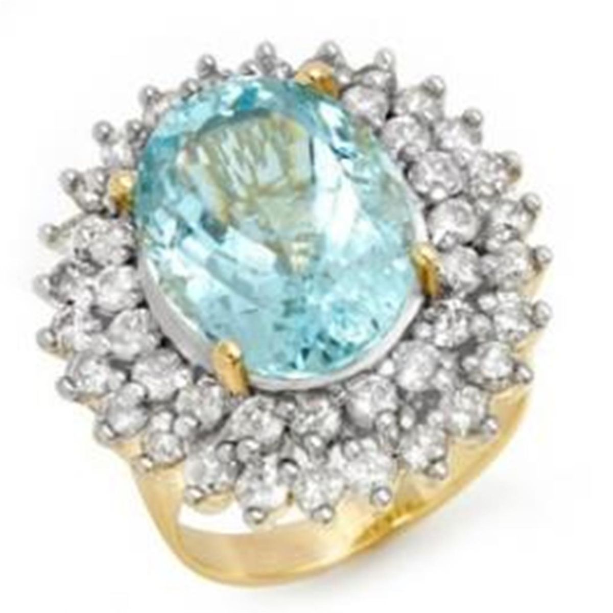 Diamond: 46 Round cut @ 2.50 ctw Clarity: SI-I Color: H-K Gemstone: Natural Aquamarine Gemstone color: AquaGemstone quality: Good-to-Very Good Gemstone Cut & Weight: 1 Oval cut @ 8.0 ctw Metal Purity & Color : 14K Gold-Yellow Gold weight: 9.50 grams Ring size (US): 7.5Dimension: Approx. 15/16" x 7/8"