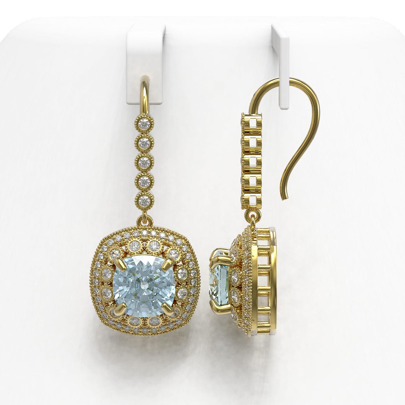REF-293H3R - SKU: 43966 ---- 10.5 ctw Aquamarine & Diamond Victorian Earrings 14K Yellow Gold