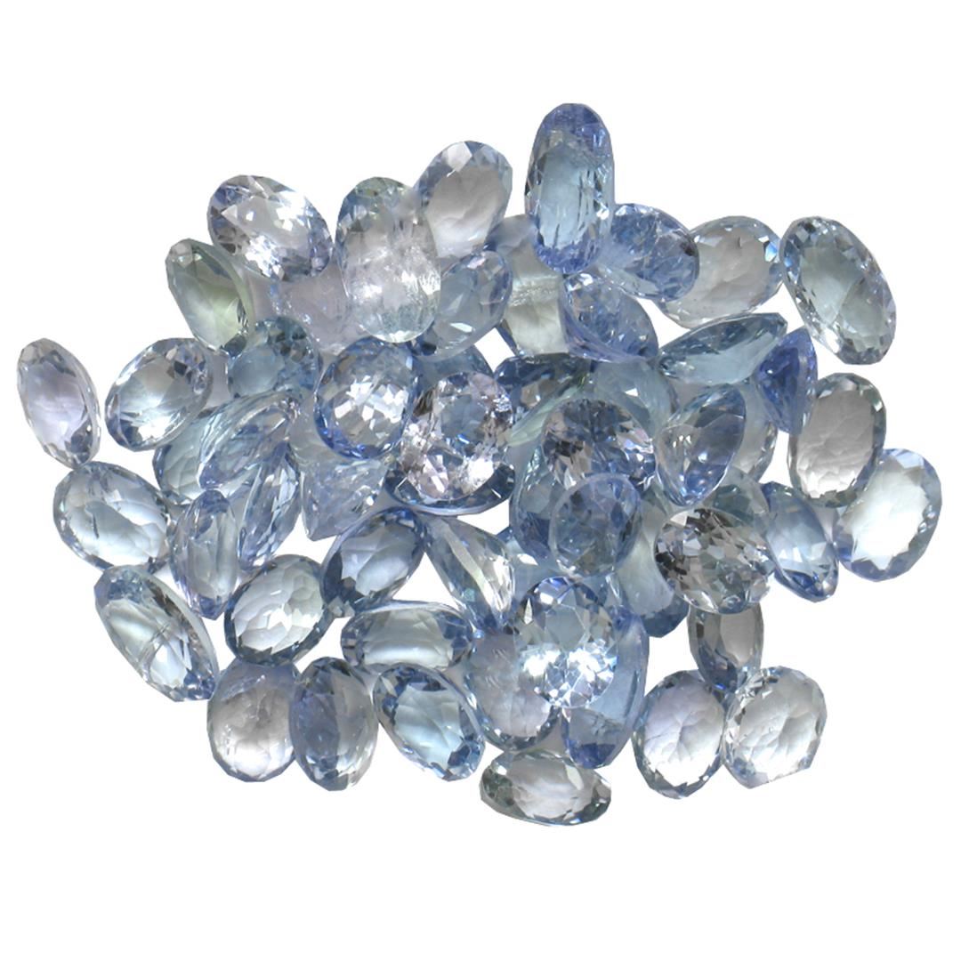 Forty oval mixed cut natural tanzanites exact total weight 10.50ct., clarity is slightly included, type I, medium dark, very slightly grayish, violetish blue color, (GIA vB 6/3), cut is good. Measurements & the color grade are an average for the group, Color grade is an average for the group, Transmitting light with no distortion, transparent, Indications of laboratory high temperature heat treatment. Westfield Appraised at $1,010.00.