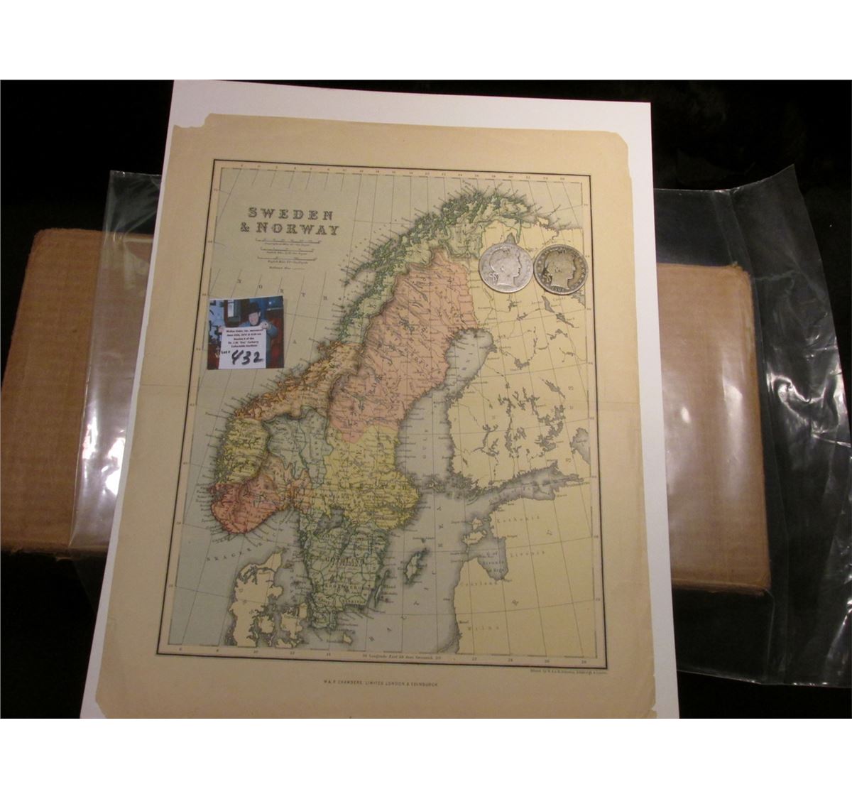 10.5" x 13" Map of "Sweden & Norway" ready for framing; & 1902 P & 1903 S Barber Half Dollars in G-AG.