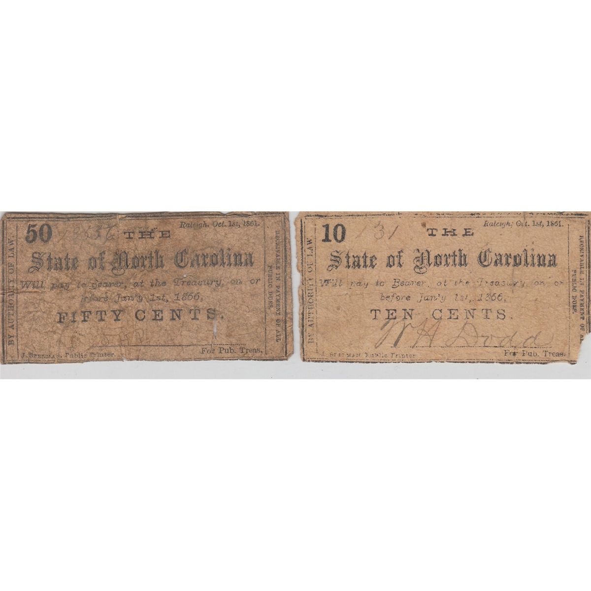 10 & 50 CENT NORTH CAROLINA 1851 OBSOLETE