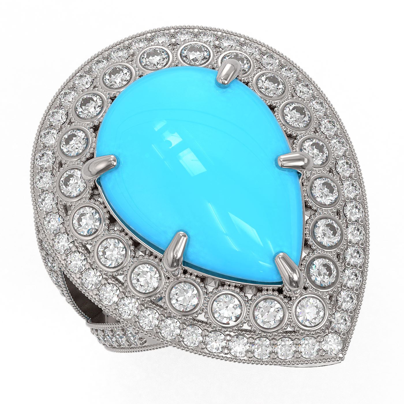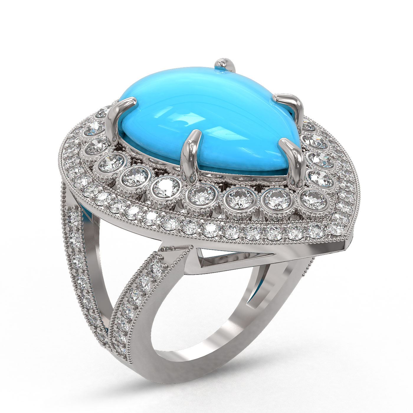 10.53 ctw Turquoise & Diamond Victorian Ring 14K White Gold