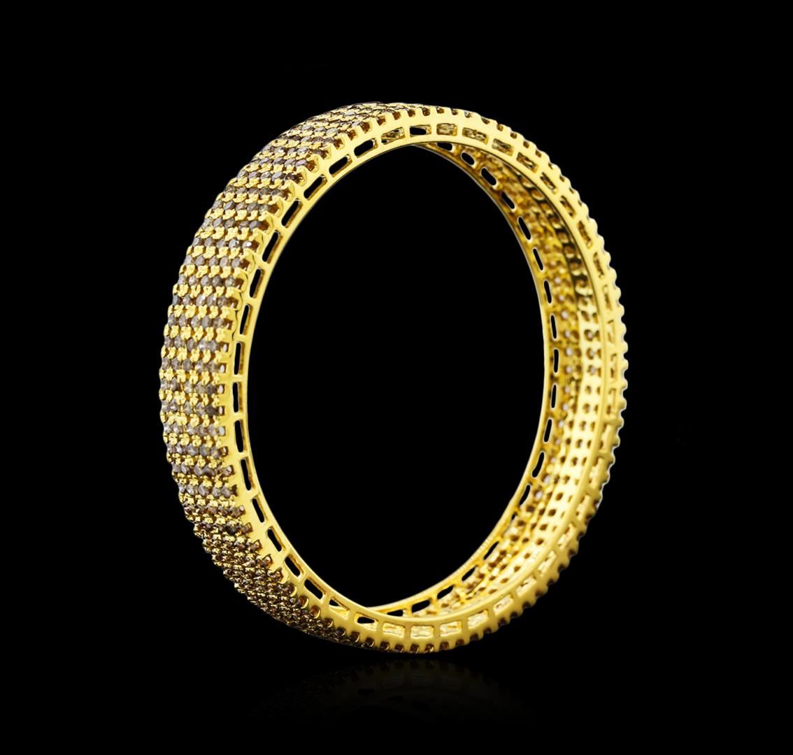 One electronically tested 14KT yellow gold ladies cast diamond bangle bracelet with a bright polish finish. 2.80" in diameter. Identified with markings of "14K". Condition is new. Containing: Four Hundred Twenty prong set round brilliant cut diamonds, measuring 1.90 - 1.90 x 1.14mm (depth est.) approximate total weight of 420 Stones = 10.54ct. Clarity: VS-2, Cut is Very Good. Diamonds are graded in the mounting, unless otherwise stated. Total Weight of Diamonds 10.54ct. Total Weight of Bangle Bracelet 50.60gm. GGL Appraised at $14,530.00.