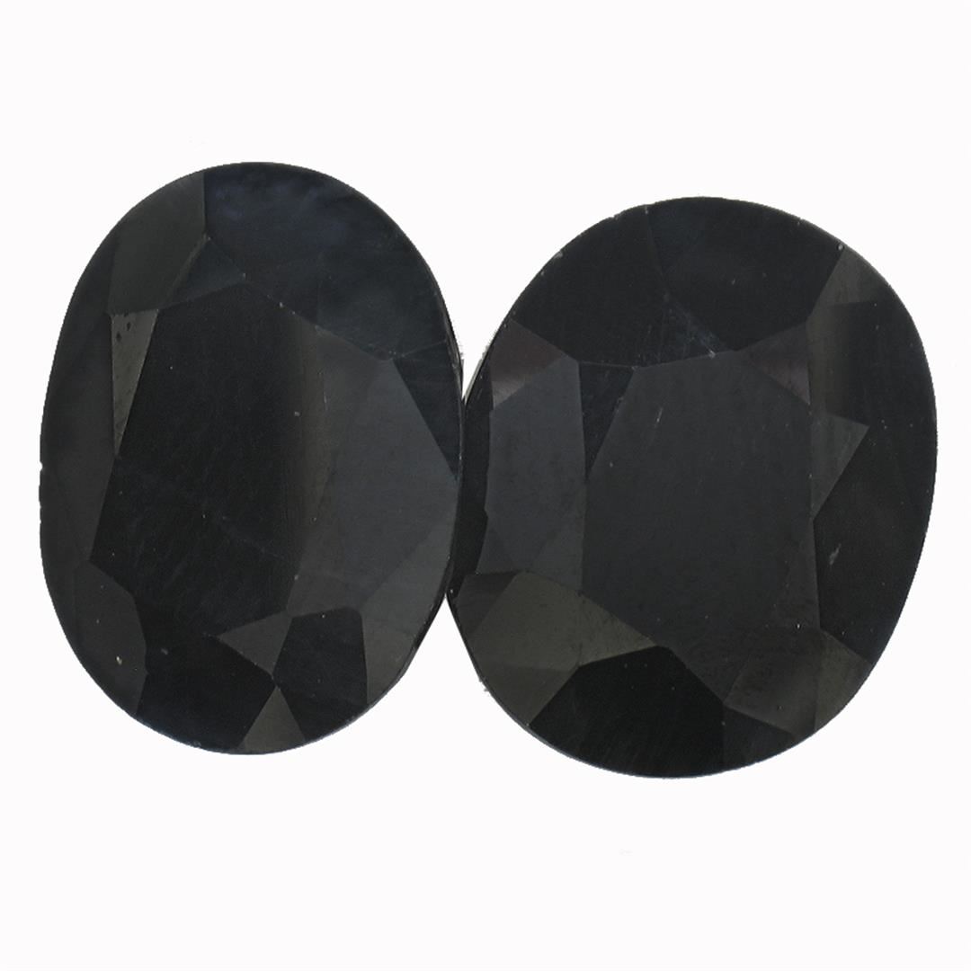 Two oval cut sapphires, measuring 12.00 x 10.00mm, approximate total weight of 10.55ct., clarity is heavily included to severely included, very dark blue color. Indications of multiple laboratory enhancements. Westfield Appraised at $950.00.