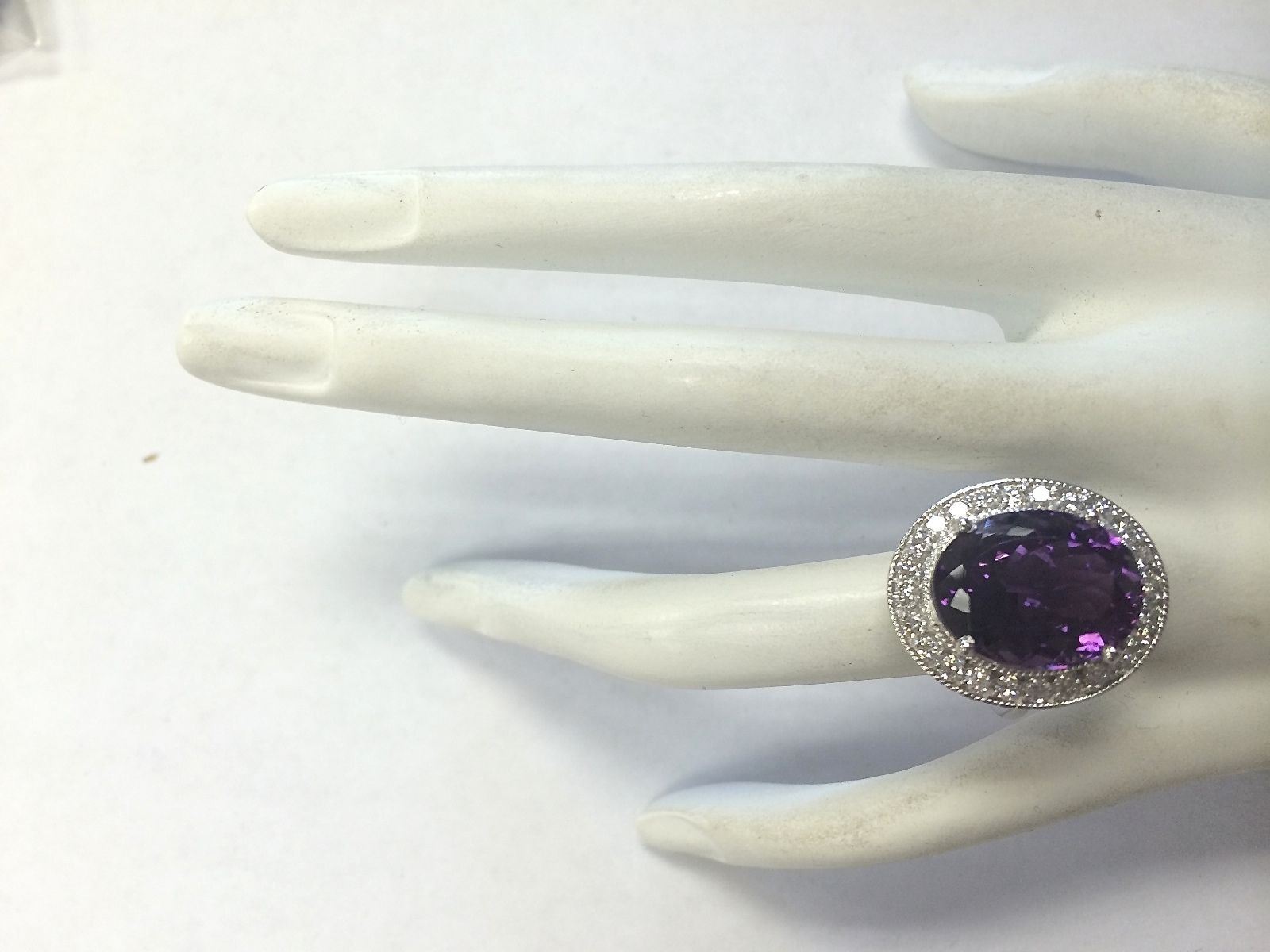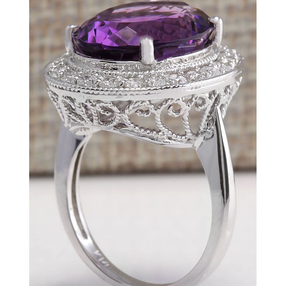 10.60 CTW Natural Amethyst And Diamond Ring In 14K Solid White Gold