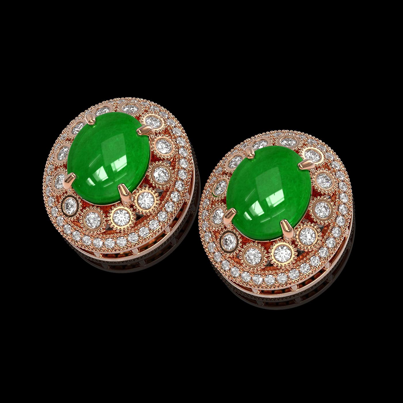 REF-269K3Y - SKU: 46108 ---- 10.61 ctw Jade & Diamond Victorian Earrings 14K Rose Gold