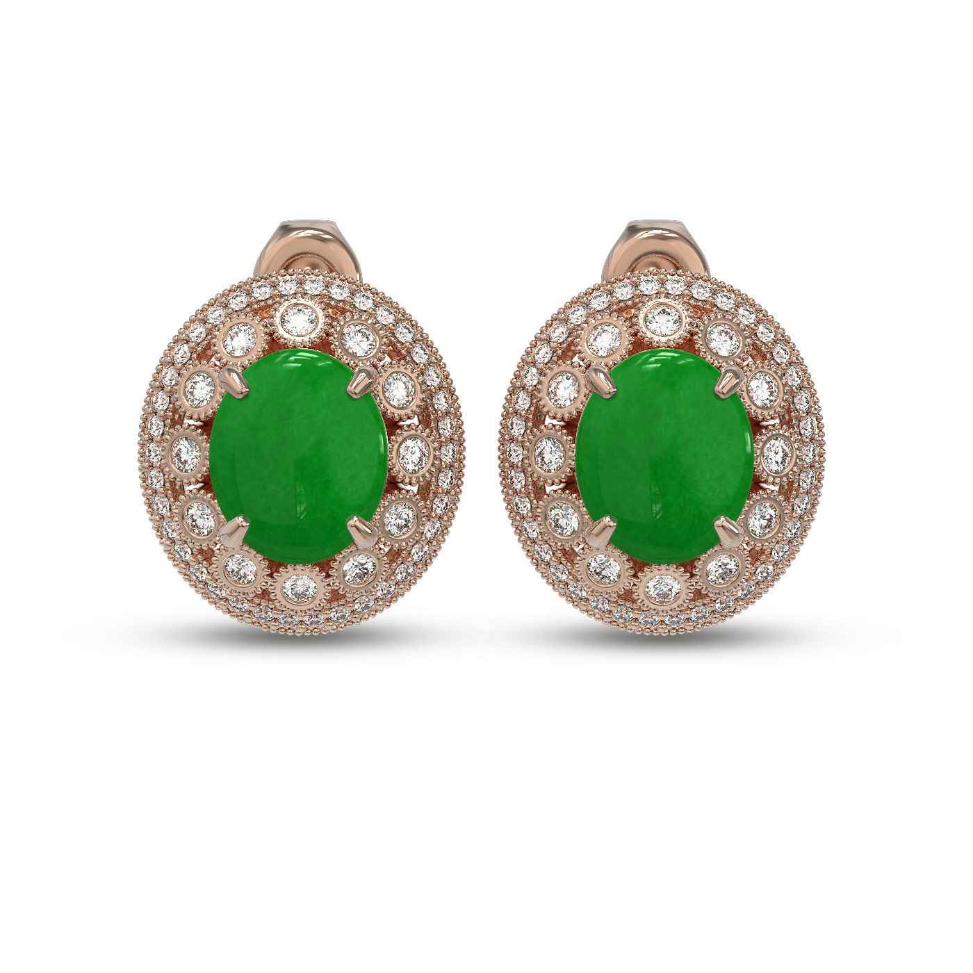 SKU: 46108 ---- 10.61 ctw Jade & Diamond Victorian Earrings 14K Rose Gold