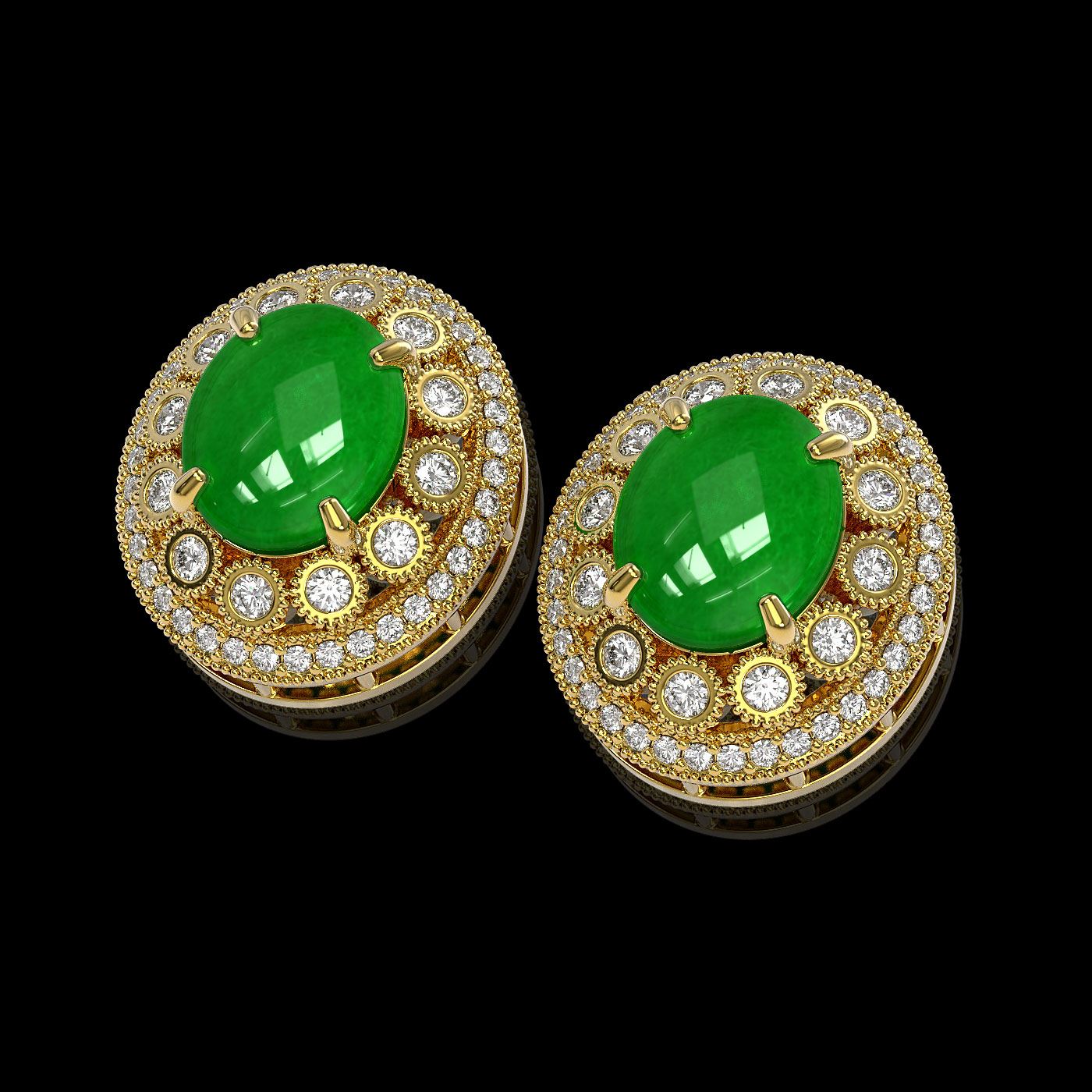 REF-269X3A - SKU: 46109 ---- 10.61 ctw Jade & Diamond Victorian Earrings 14K Yellow Gold