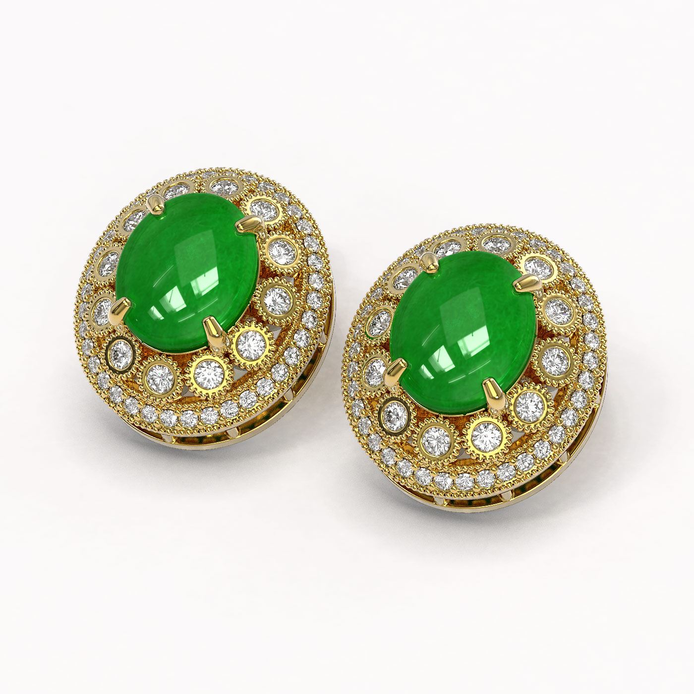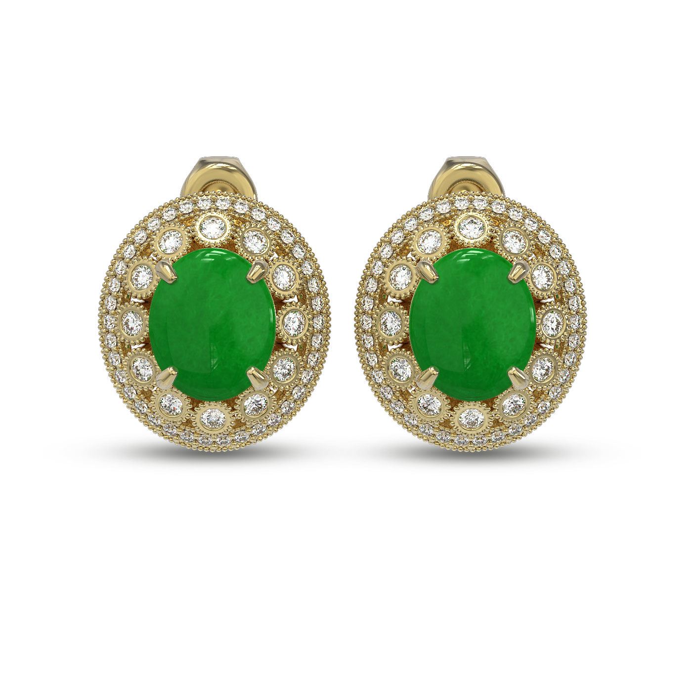 SKU: 46109 ---- 10.61 ctw Jade & Diamond Victorian Earrings 14K Yellow Gold