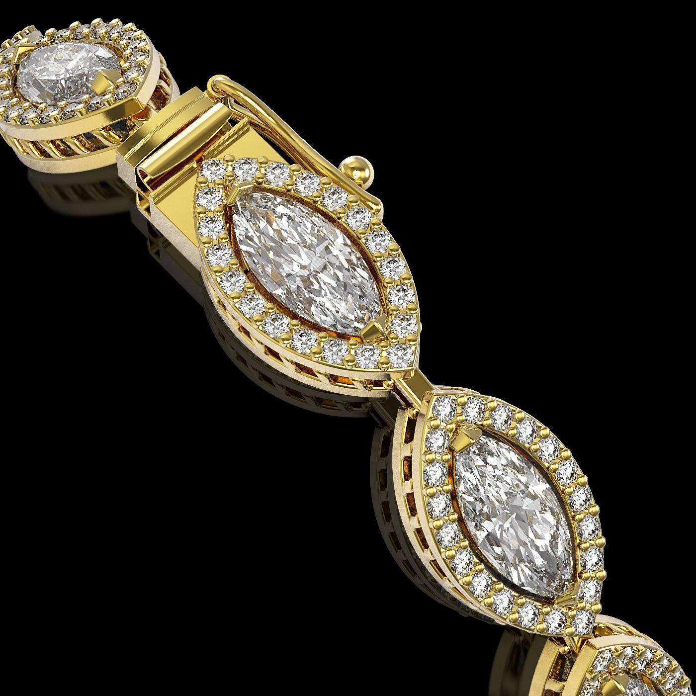 REF-1459M6G - SKU: 42655 ---- 10.61 ctw Marquise Cut Diamond Micro Pave Bracelet 18K Yellow Gold