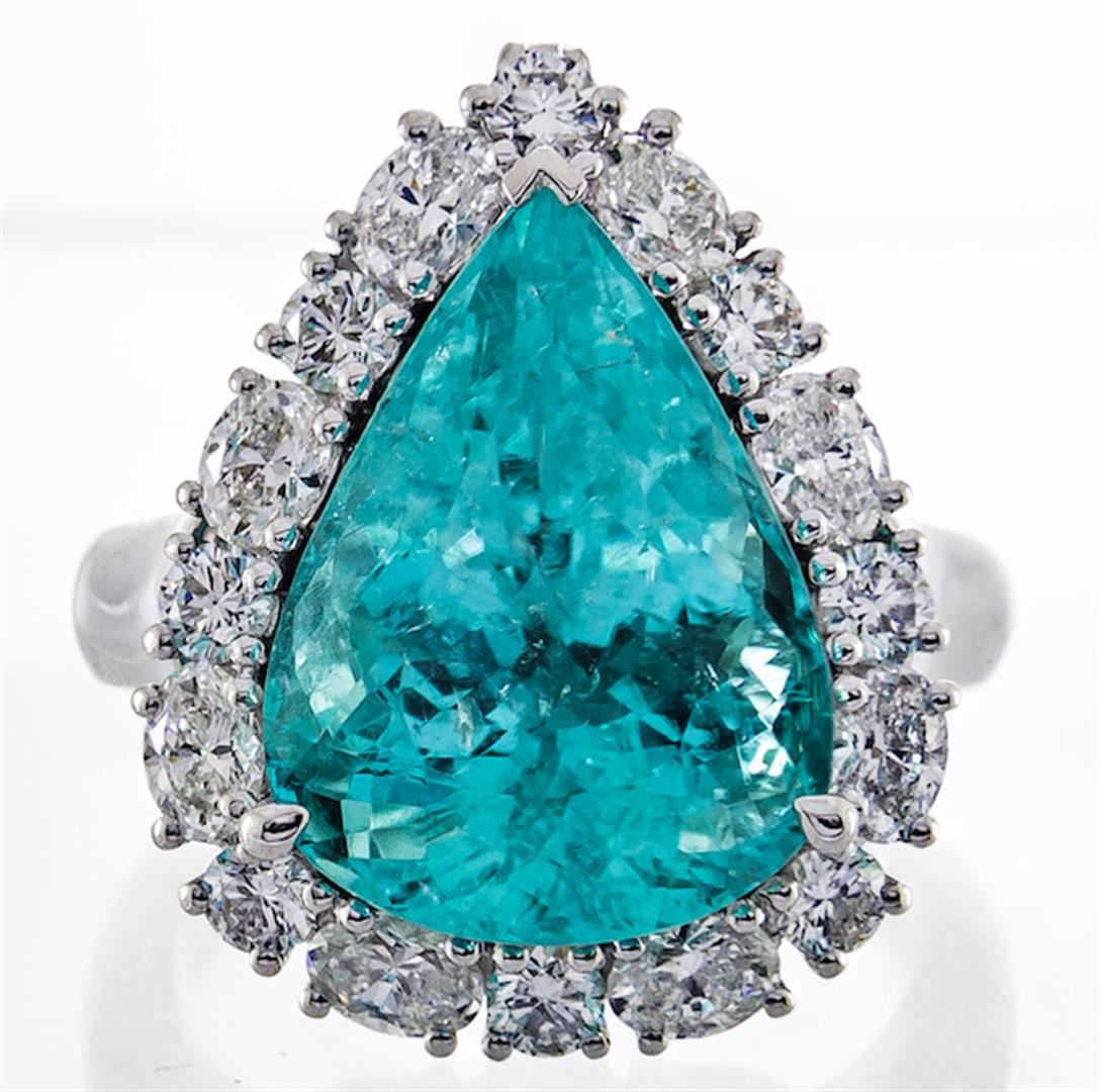 One ring featuring: 18KT White Gold weighing 13.44 grams containing one oval cut Paraiba Tourmaline with a total weight of 10.61 ct and diamonds weighing a total of 1.89 ctw.