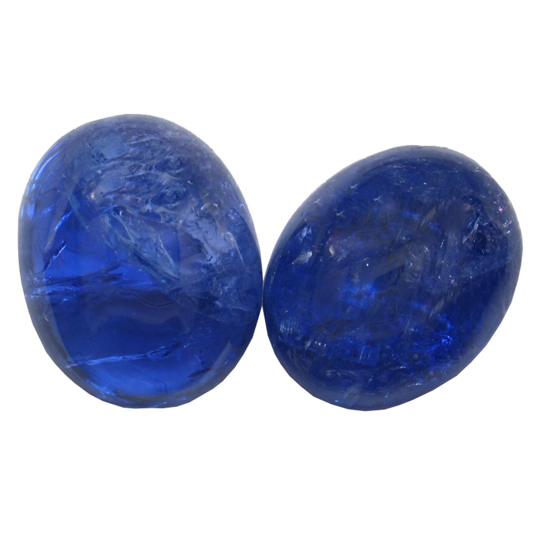 Two oval cabochon cut natural tanzanites, measuring 11.50 x 9.00 x 6.00mm, exact total weight 10.61ct., clarity is heavily included, type I, dark, moderately strong, violetish blue color, (GIA vB 7/4), cut is good. Transmitting light somewhat diffusely, transparent to translucent. Naturally occurring internal & external characteristics are present. Measurements & the color grade are an average for the pair. Tanzanite is a very rare gemstone that is only found in the country of Tanzania. Originally discovered in 1967. Tiffany & Company, named the stone Tanzanite. It is found in the Usumburu Mountains that border the Umba Valley of northern Tanzania. Tanzanite occurs in gray, brown, violet, blue, reddish-purple, & green. The gem is interesting because of its exceptional pleochroism. Rotated in different directions a tanzanite will exhibit multiple changes of color. Tanzanite has a low tolerance to ultrasonic cleaning, and should not be cleaned using this method. Westfield Appraised at $1,020.00.