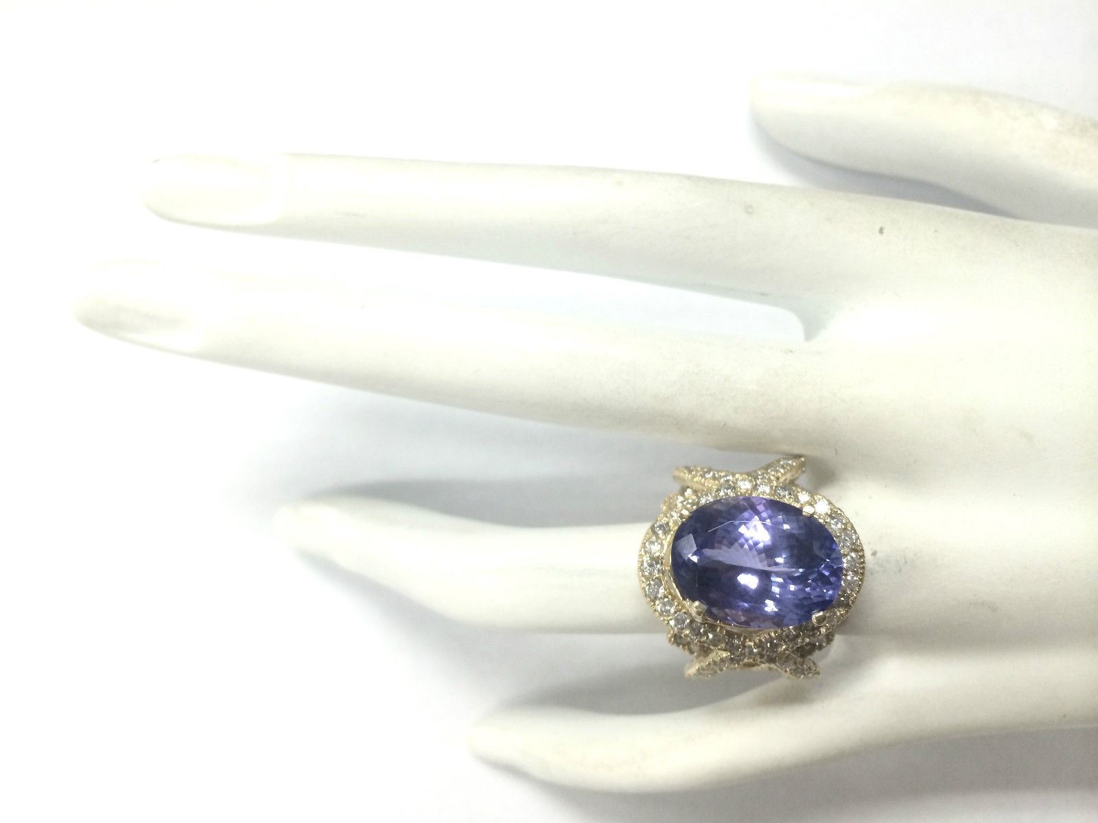10.62 CTW Natural Blue Tanzanite And Diamond Ring In 14K Solid Yellow Gold