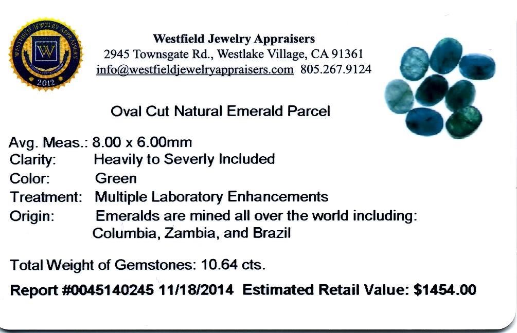 10.64cts. Oval Cut Natural Emerald Parcel Westfield Appraised at $1,454.00.