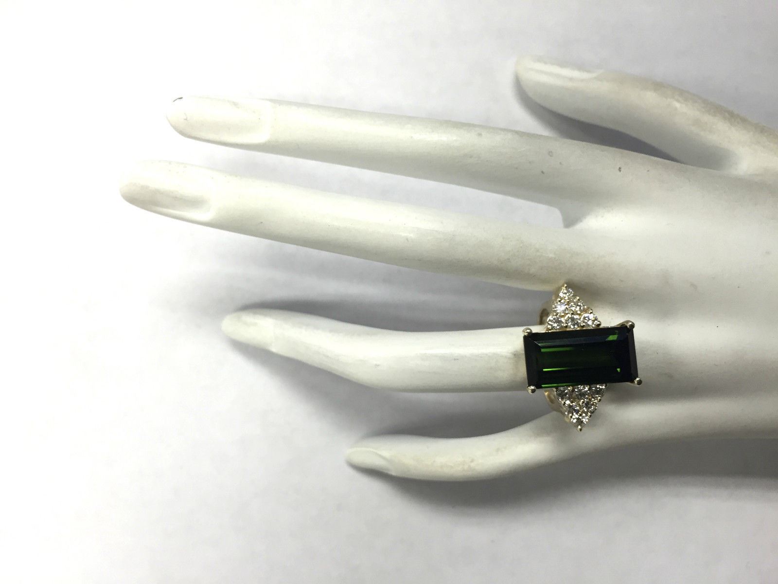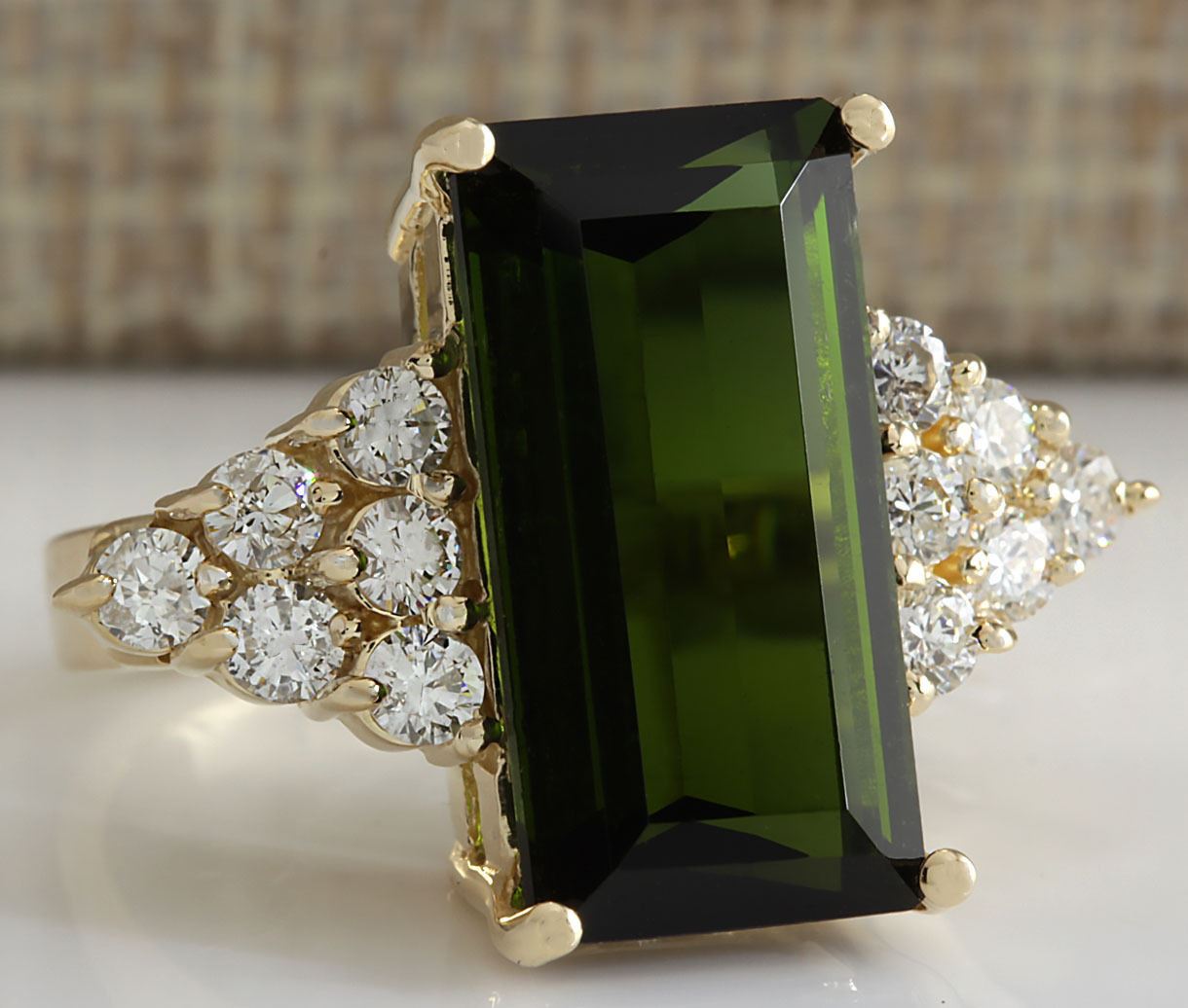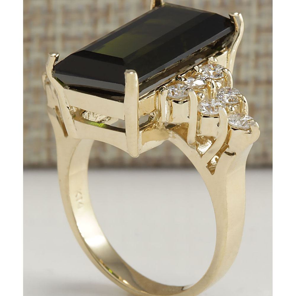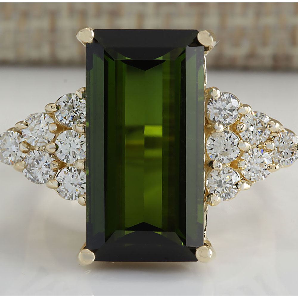 10.65 CTW Natural Green Tourmaline And Diamond Ring 18K Solid Yellow Gold