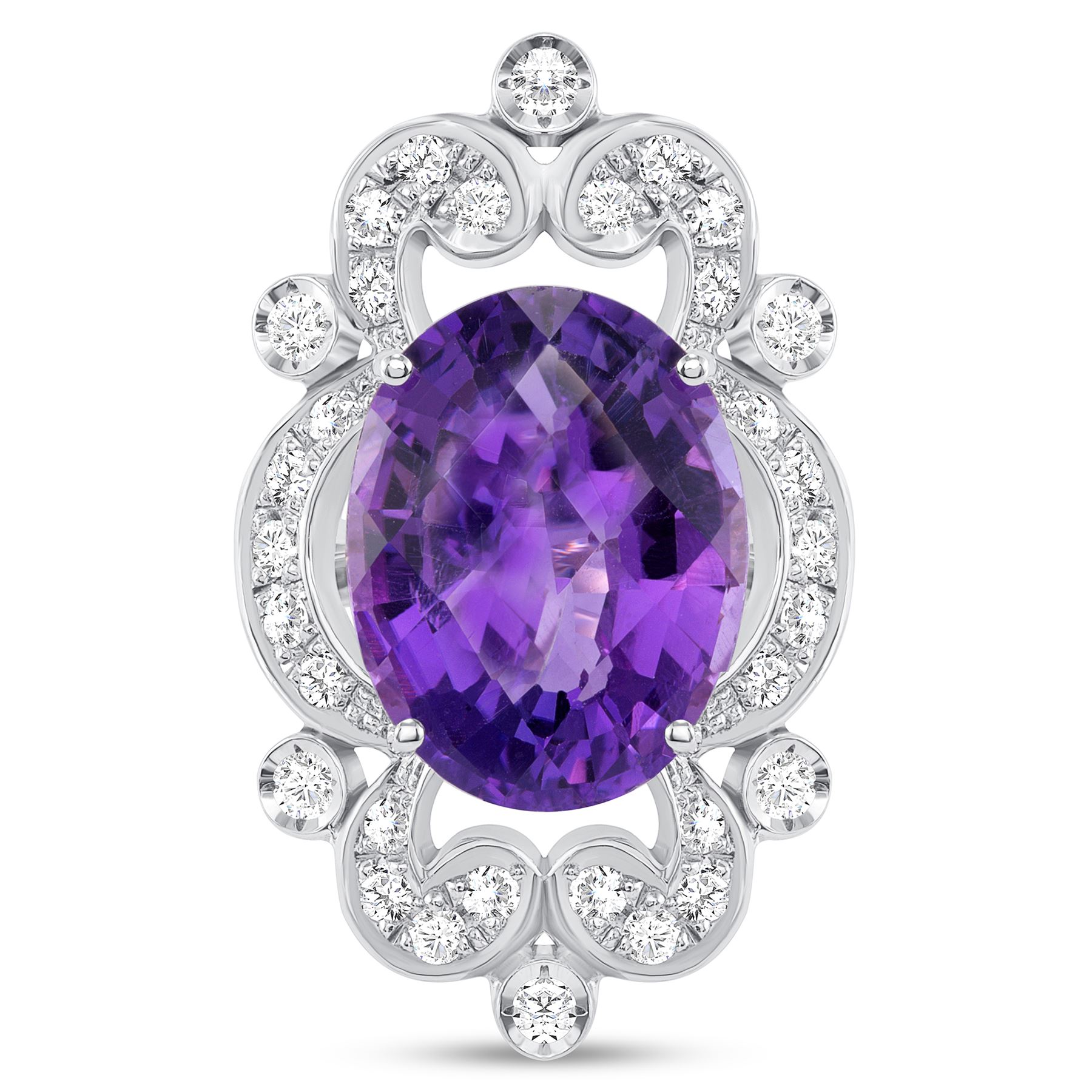 14k White Gold 11.9gm / Oval Purple Amethyst 10.65ct / Diamond 1.15ct / #Lkz2