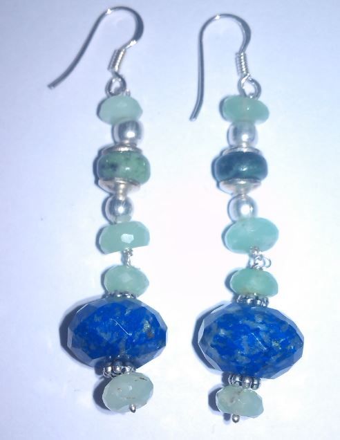 10.690g Earring of Lapis and Malachite Sterling 925 Silver