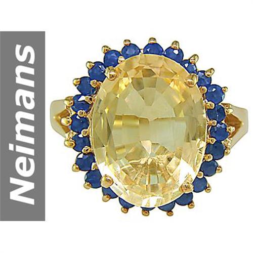 </tr></table><table border=0 width=100% cellspacing=0 cellpadding=10><tr><td valign=top style='background-repeat: no-repeat; font-family: Verdana; font-size: 8pt'><b><!-- ///START/// INSERT JEWELRY SPECIFIC DATA --><font size=5>Graduate Gemologist Certified 10.7 Carat Citrine & Sapphire Ring elegantly set in solid 14kt gold!!</font><font size=5>
