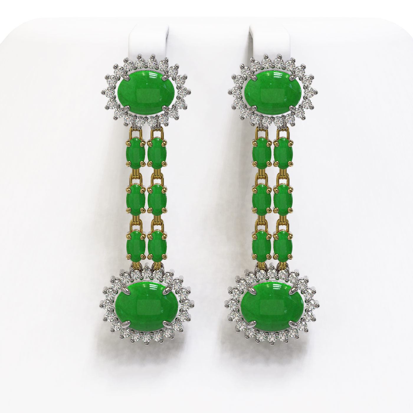 REF-174G2W - SKU: 44509 ---- 10.72 ctw Jade & Diamond Earrings 14K Yellow Gold