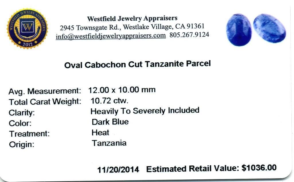 10.72ctw. Oval Cabochon Cut Tanzanite Parcel. Westfield Appraised at $1,036.00.