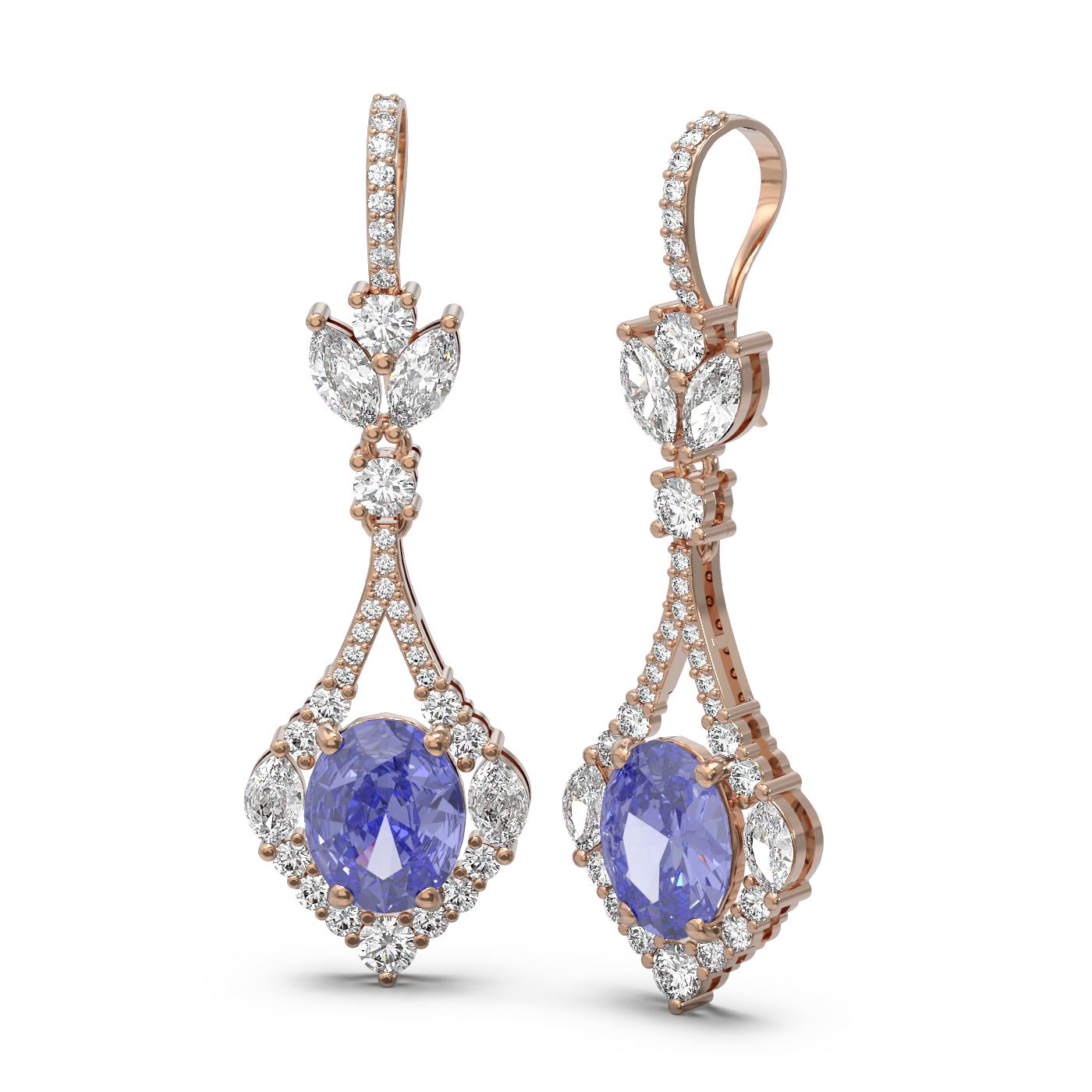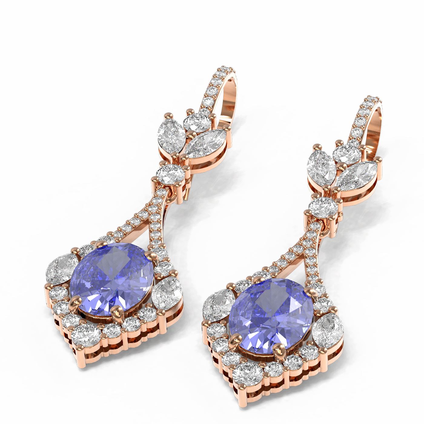 SKU: 60081 ---- 10.73 ctw Tanzanite & Diamond Earrings 18K Rose Gold