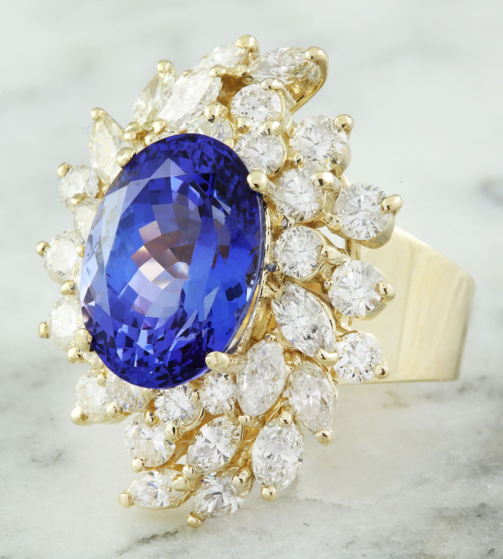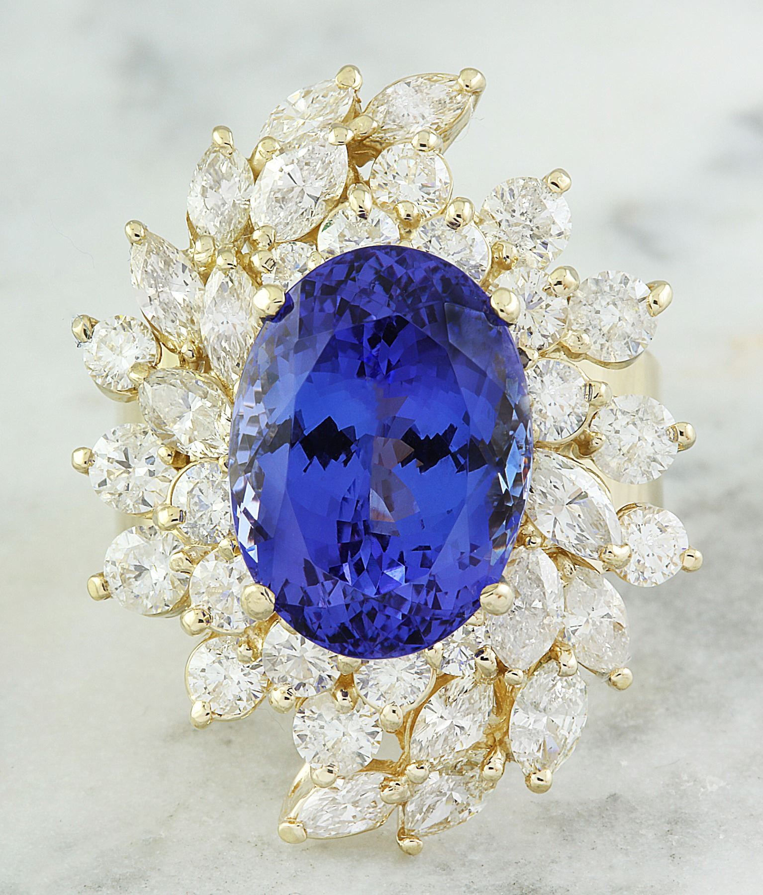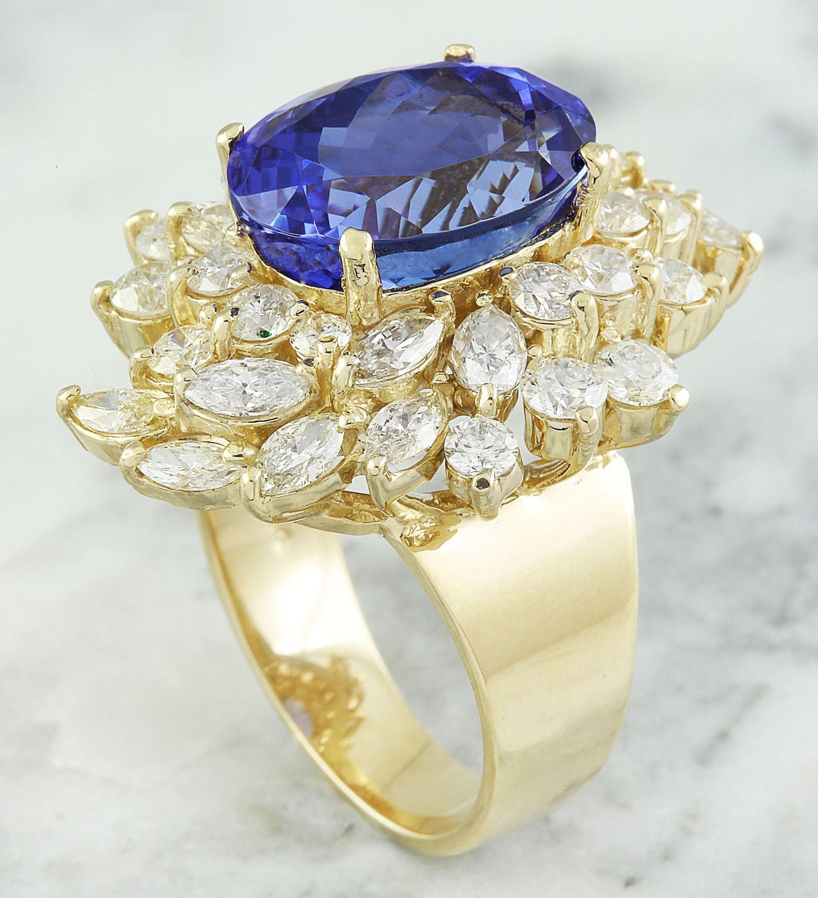 10.75 CTW Tanzanite 14K Yellow Gold Diamond ring