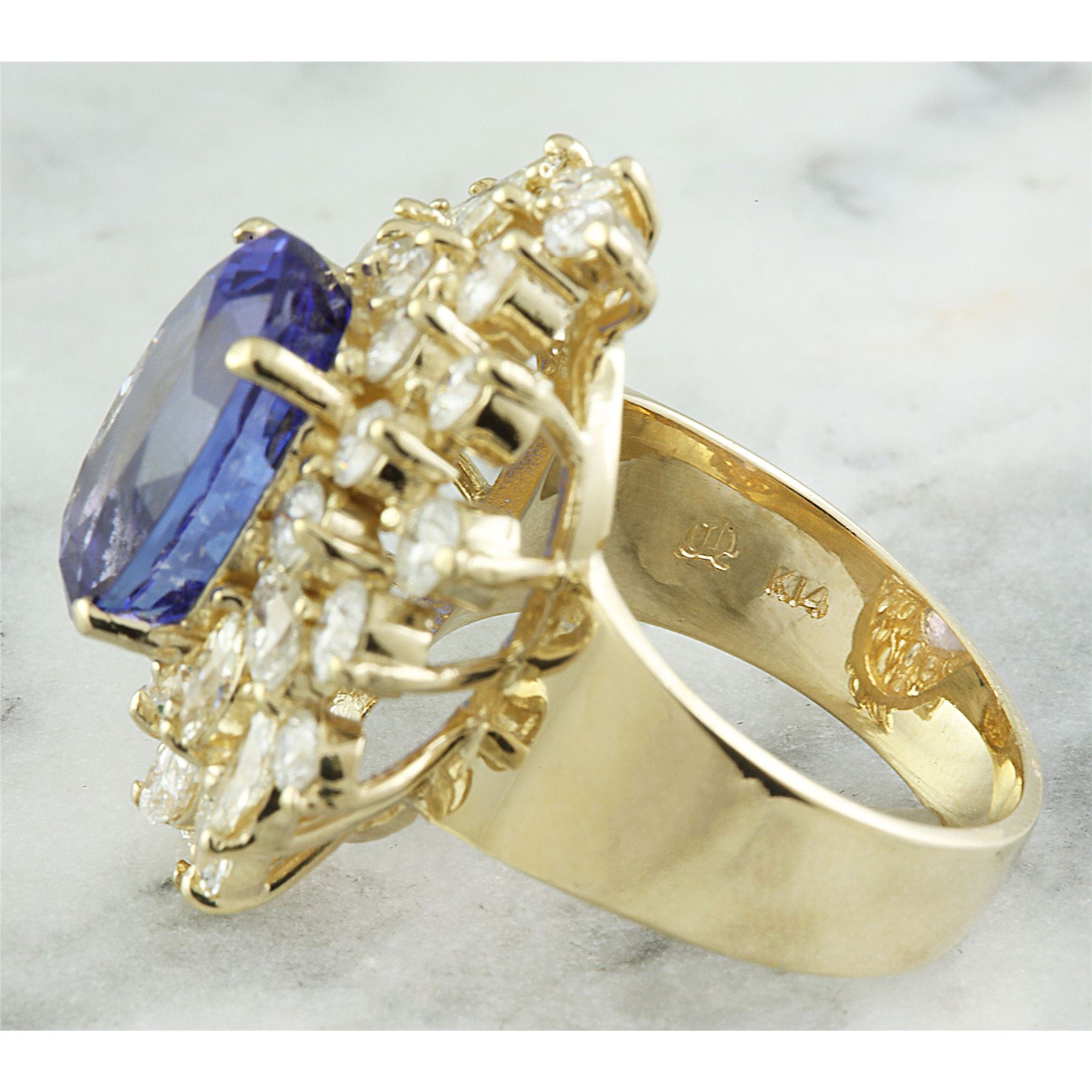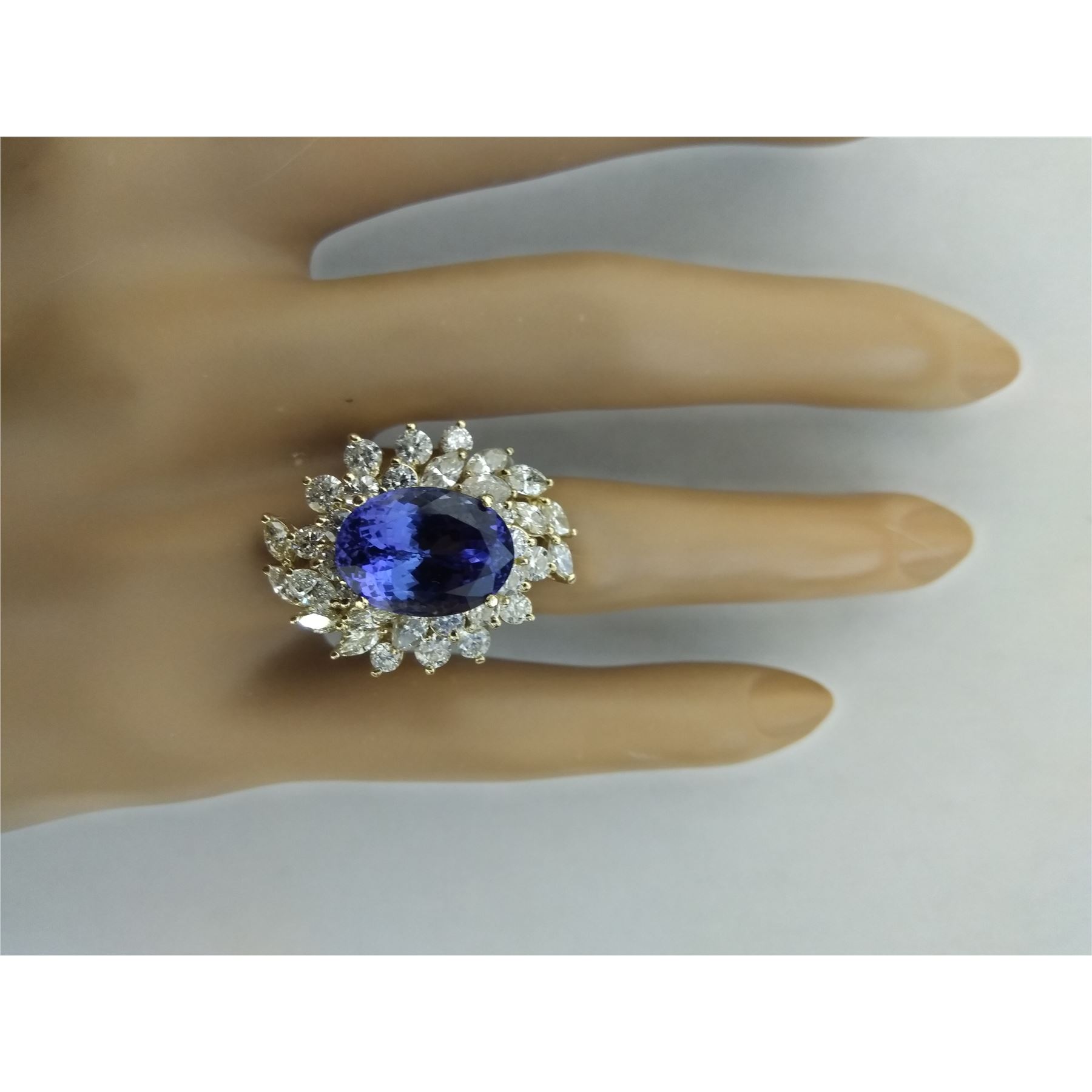 10.75 CTW Tanzanite 18K Yellow Gold Diamond ring