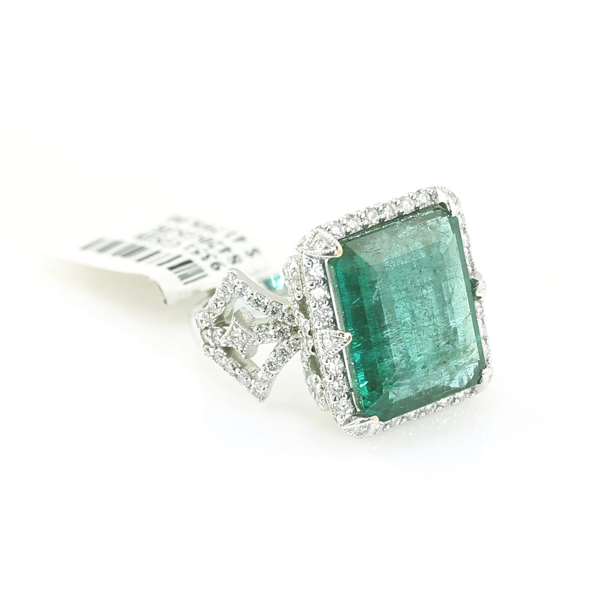 EMERALD AND DIAMOND IN 18K GOLD WHITE GOLD RING/Diamond Count 1:/Diamond Total Carat :/Diamond Color & Clarity:G-H/SI1-SI3 /Diamond Count 2:/Diamond 2 CTW:/Diamond Count 3:/Gemstone Count 1:/Gemstone CTW:10.78/Gemstone Dimension:/Gemstone Shape:Emerald Cut-Emerald /Gemstone Count 2:/Gemstone Shape:/Ring Dimension:/Metal Type 1:18kWhite Gold :Gram Weight:8.9/Metal Type 2:/ Weight Gram:/Gross Weight :/Ring Size:7