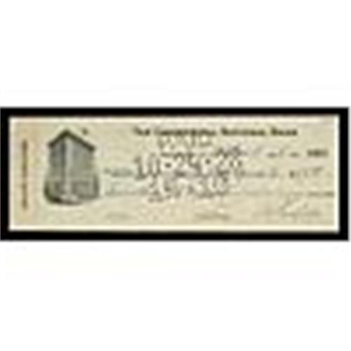 Personal check dated October 8, 1928, signed in black fountain pen during his Presidency by former President Calvin Coolidge. Check shows two folds and minor creasing, signature grades a 7 to 8. Presidential signed checks are rare, however, checks signed during their Presidency are even more scarce. Accompanied by a LOA from JSA.