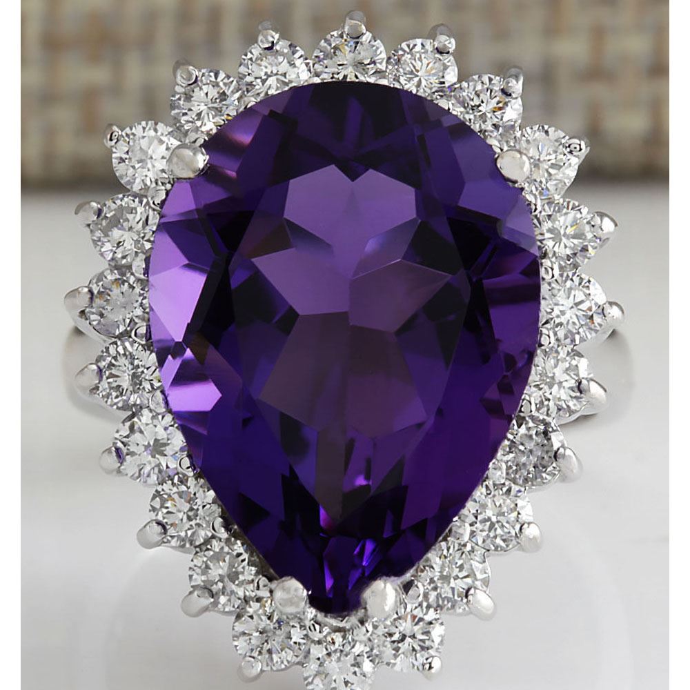 10.80 CTW Natural Amethyst And Diamond Ring In 14K Solid White Gold